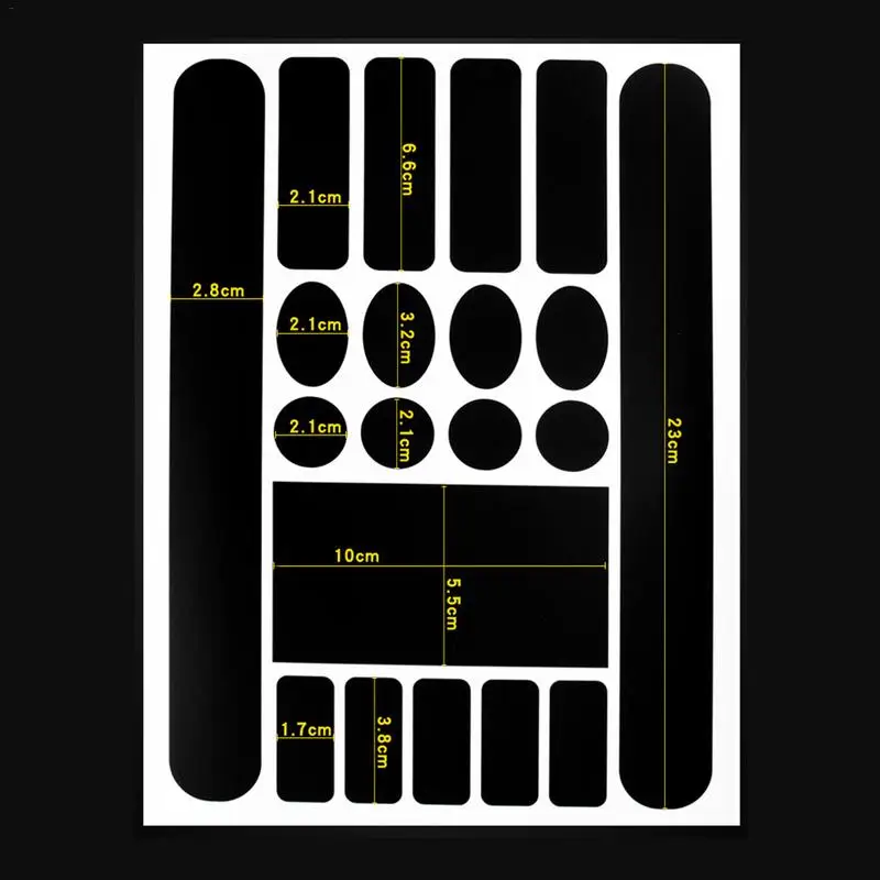 Матовая черная и углеродная Черная Цепь защитная наклейка поставляется с воздушным направляющим канавкой, так что она проста в эксплуатации и не будет производить пузырьки. Прозрачная наклейка в виде носорога мягкая и отлично подходит для защиты рамы велосипеда. Защитный стикер цепи может эффективно защитить раму велосипеда, переднюю вилку и части трения с катушкой.