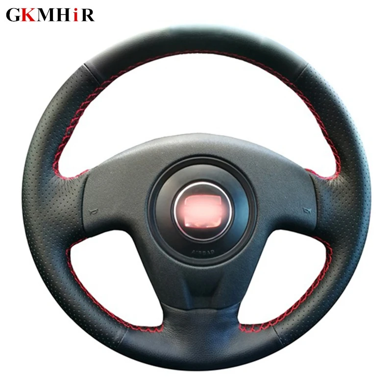 Чехол на руль из искусственной кожи для Seat Ibiza чехол рулевого колеса автомобиля 2004, сделай сам, прошитый вручную черный, 2006