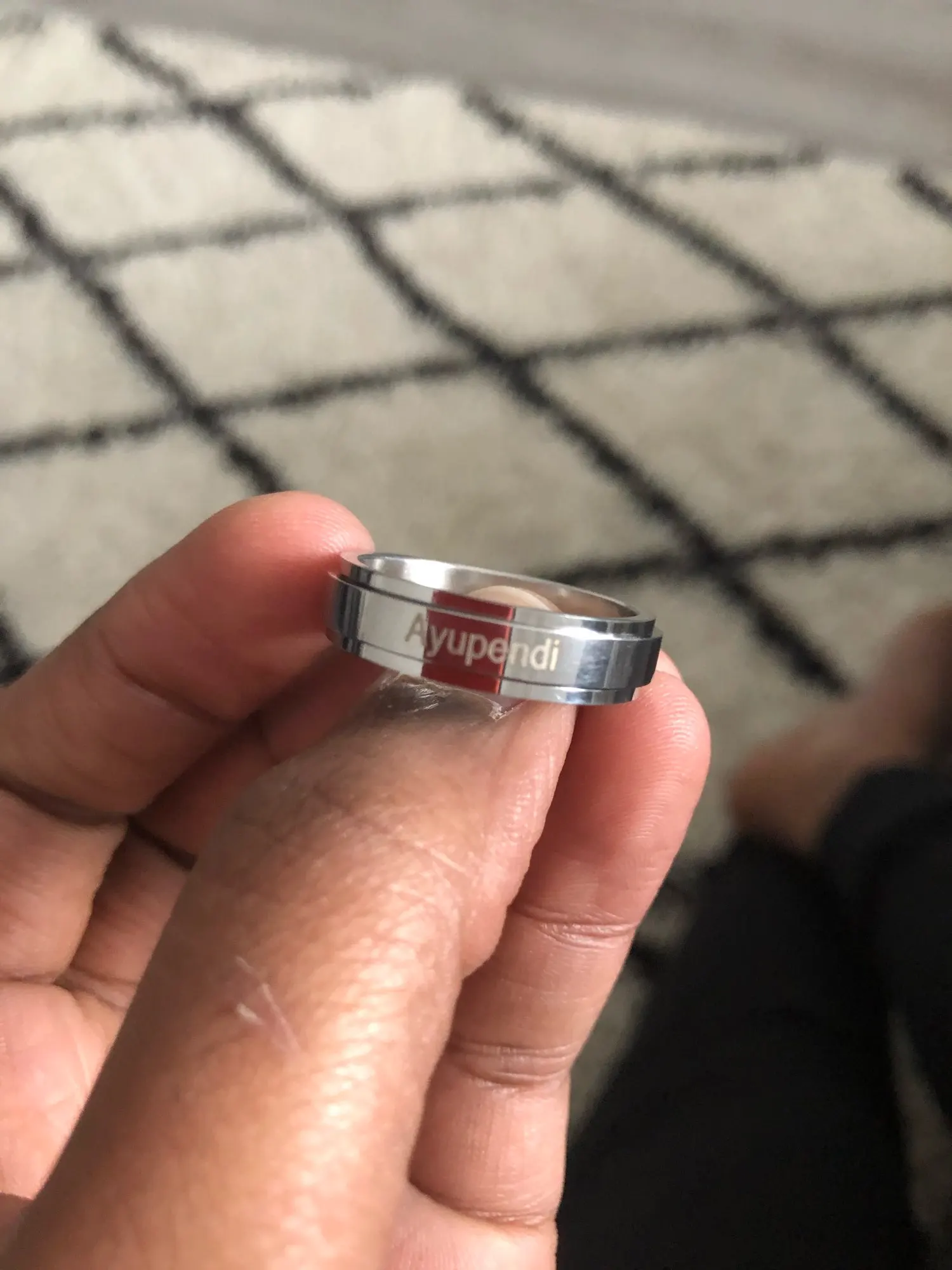Я заказал пару этих колец для меня и моего парня. Очень поздно, учитывая, что я разместил заказ 15 января, и посылка прибыла сегодня (4 марта). Для самого кольца, в Спиннер части письма не очень хорошо видно... Должен был сказать «Waifu», но вы ничего не можете увидеть и сравнить с датой внутри, которая находится в верхней части. Дата внутри отлично видна. Я не очень доволен своим кольцом, по крайней мере, они входят в мешок для пыли...