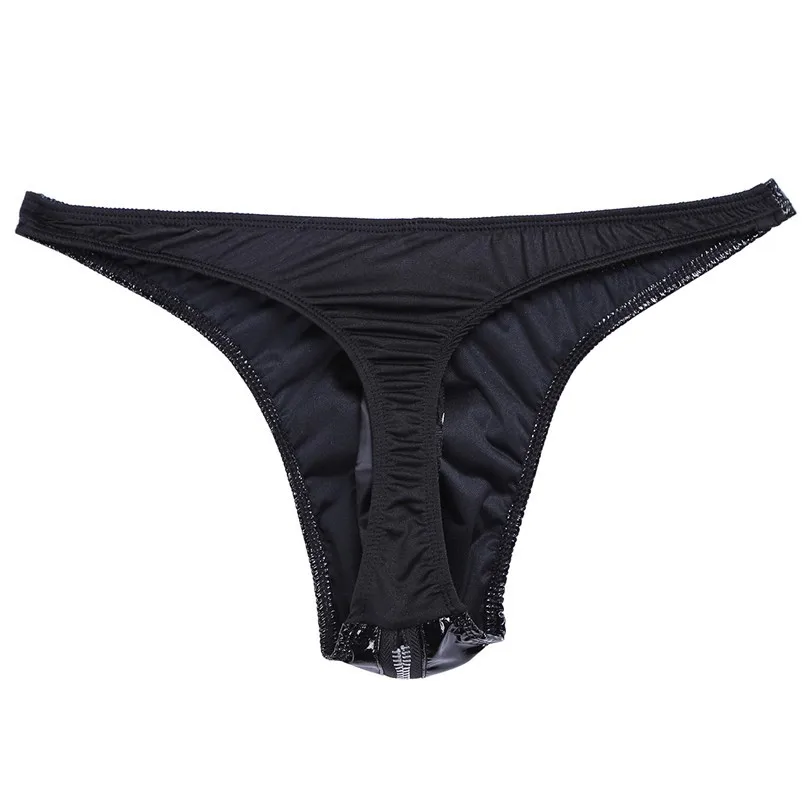 Мужские трусы джоки на молнии, с низкой посадкой, из лакированной кожи