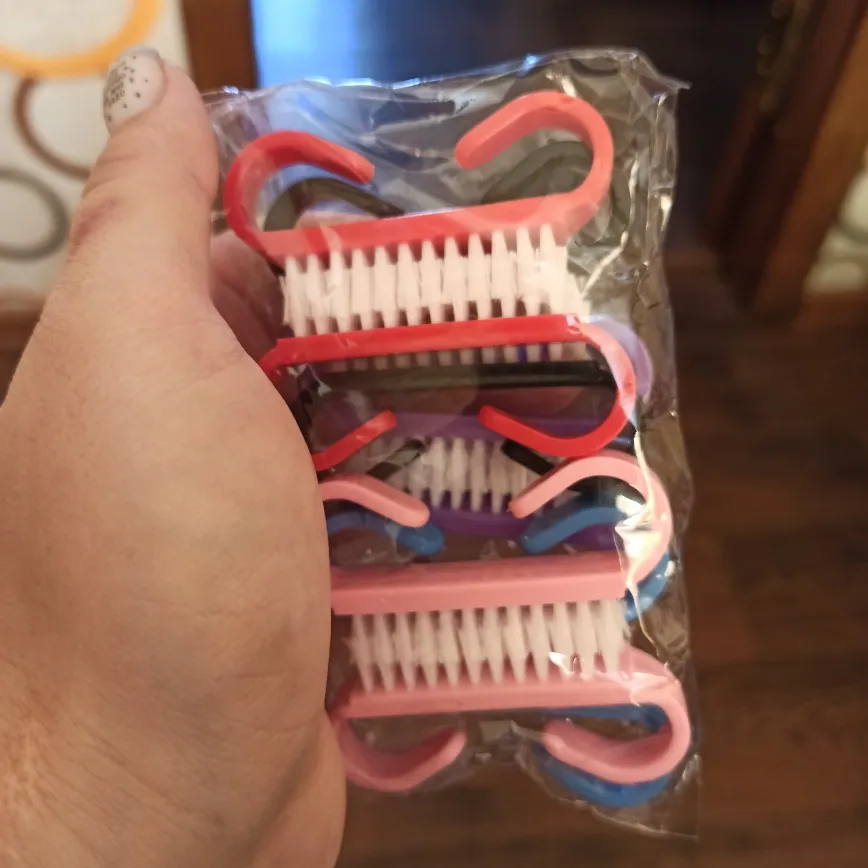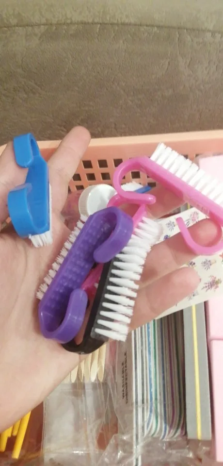 10 шт.лот, щетка для чистки ногтей, акриловая, пластиковая ручка