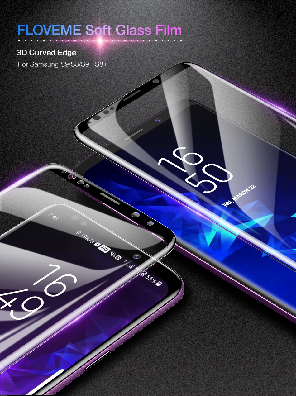 FLOVEME 3D изогнутая мягкая защитная пленка с полным покрытиемОписание продукта:Название: защитная 3D изогнутая мягкая пленка для экранаХарактеристики: Ультрамягкая пленка + 3D полное покрытие + защита от царапинМодель:Защитная пленка для Samsung Galaxy S10 S10 Plus S10eДля Samsung Calaxy S8 S9 для Samsung Note 8 Note 9Тонкая Защитная пленка для экрана для Samsung Galaxy S8 Plus S9 Plus