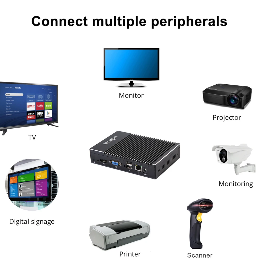 Vnopn Мини ПК AMD Windows 10 Linux четырехъядерный безвентиляторный WIFI Gigabit LAN Barebone HD-MI VGA промышленный ПК микро настольный компьютер