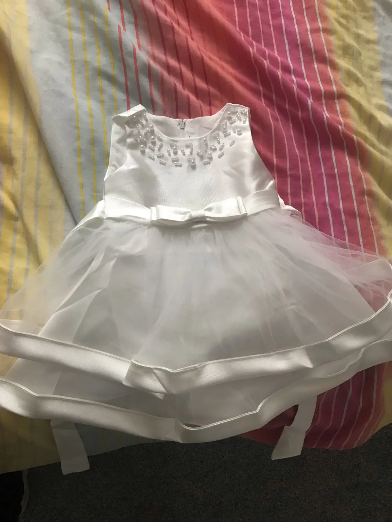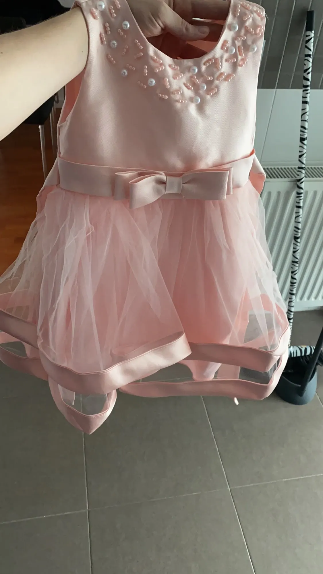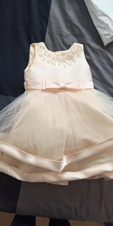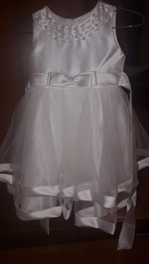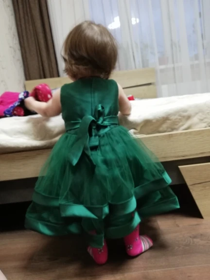 Красивое платье. На годик ребёнку в пол. Брала размер немного с запасом на 18 мес. Отпарить и красота.