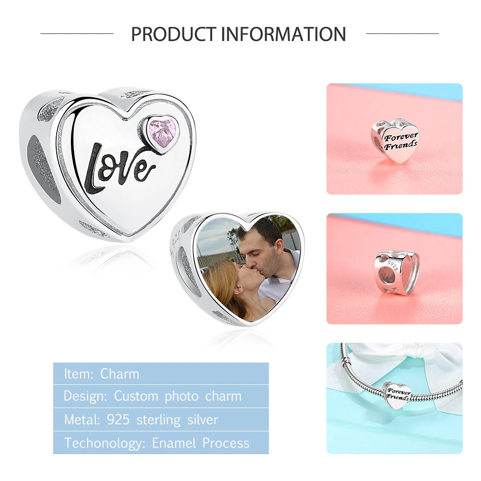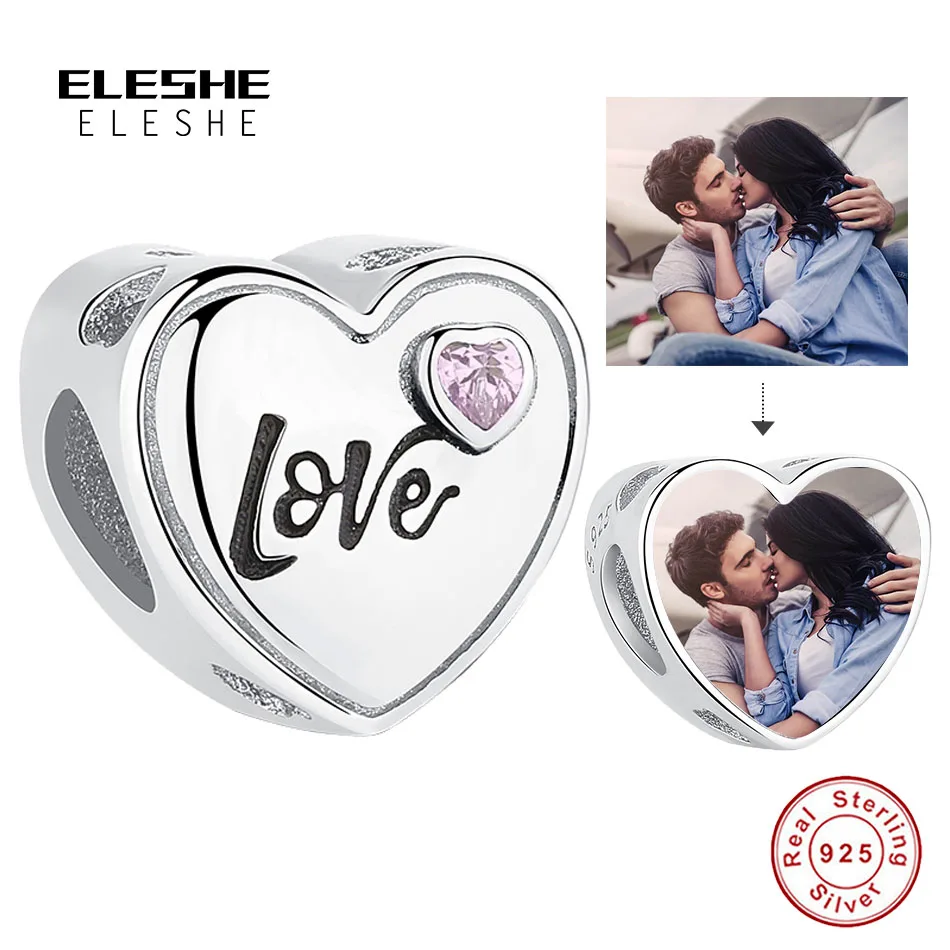 ELESHE 925 пробы серебро розовый любящее сердце бусины в форме двойного конуса, красивые, подходят к оригинальному браслету, браслет DIY персонализированные фото на заказ Шарм ювелирные изделия