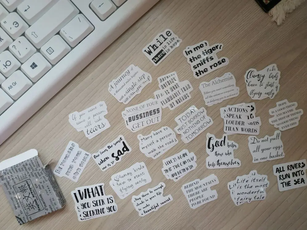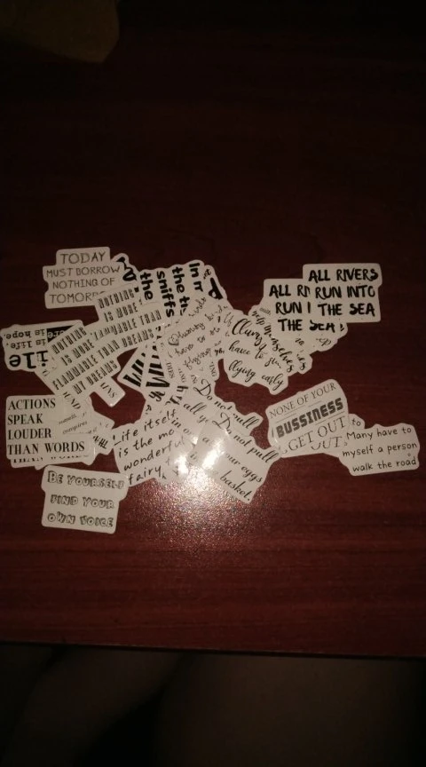 понравилось оформление и сами фразы. каждого варианта наклейки по две (type T)
