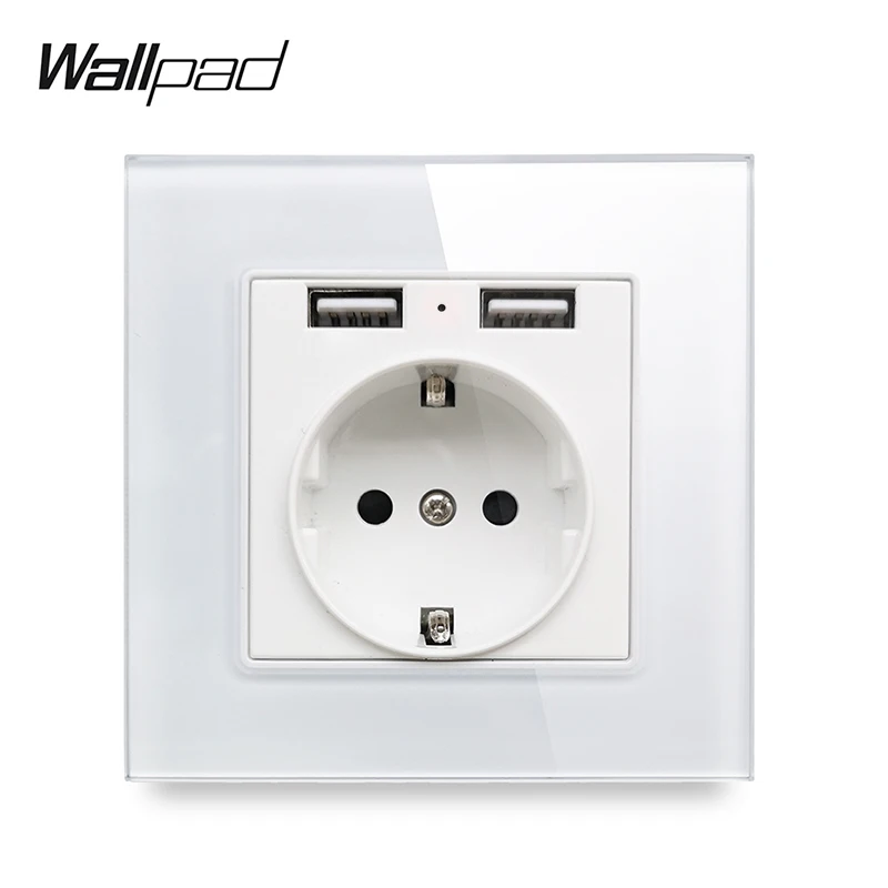 Настенная розетка европейского стандарта с двумя USB-портами 2,4 А, 2 USB-порта