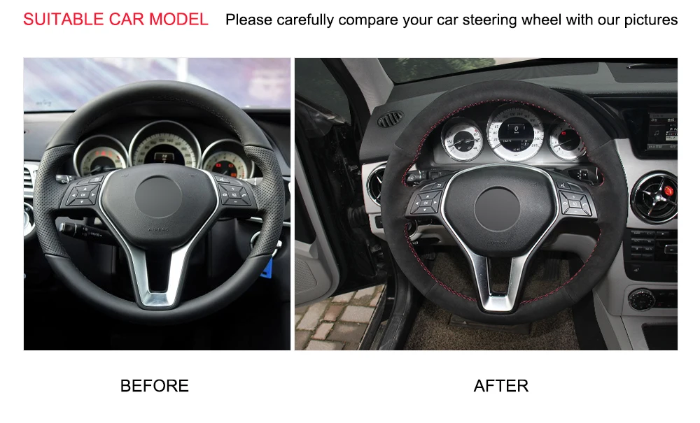 Сшитый вручную черный замшевый чехол на руль для Mercedes Benz C-Cl...