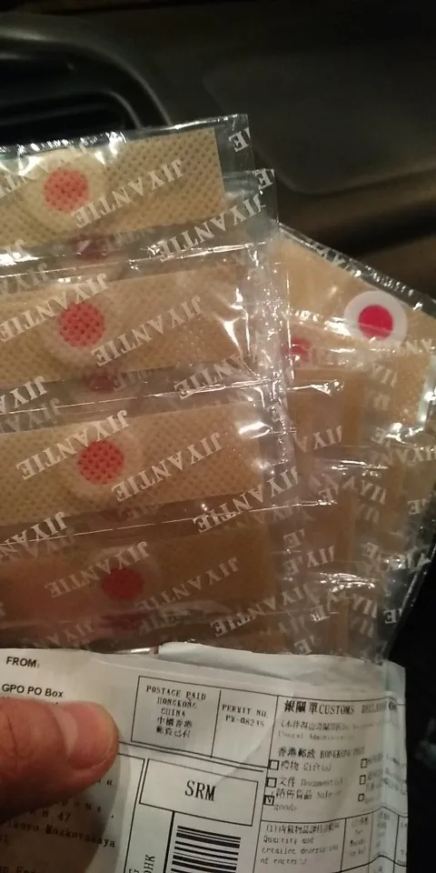 прибыло за 20 дней на почту, пластырь хорошего качества, клеится отлично без дополнительной фиксации, запах гуашью. Очень надеюсь, что поможет справиться с моей проблемой.