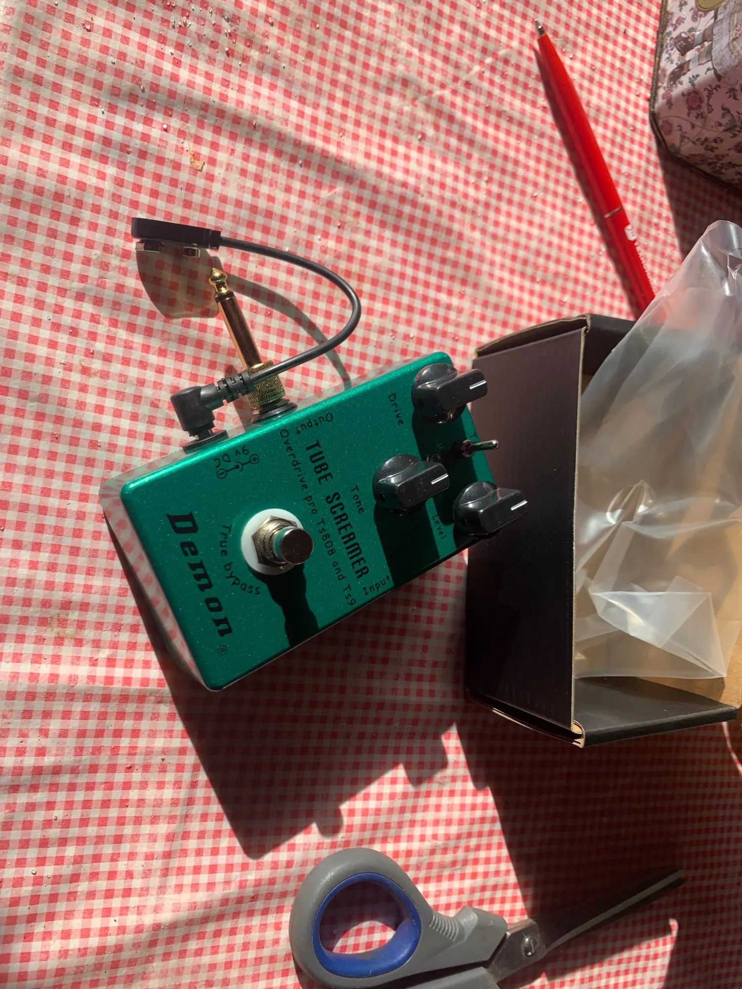 I'm happy for recieving this item. Looks good, It works best with 9 Volt battery instead of a powerunit, to much HUM. The TS808 / TS9 Switch makes no different at all... But great value for the money!