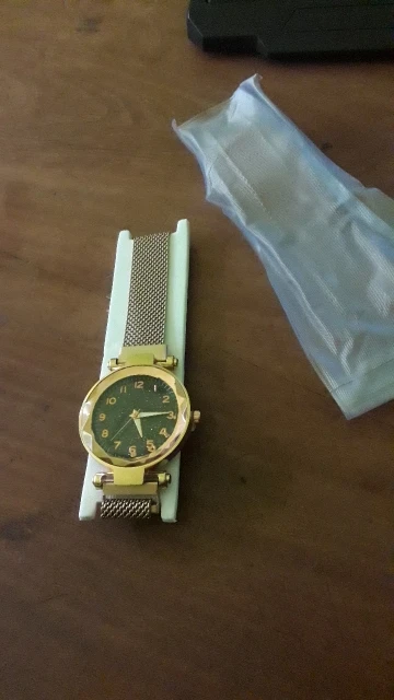 Отличный продукт. Очень отец, золотые магнитные часы, которые блестят в темноте и хорошо защищены с полиэтиленовым пакетом часов.