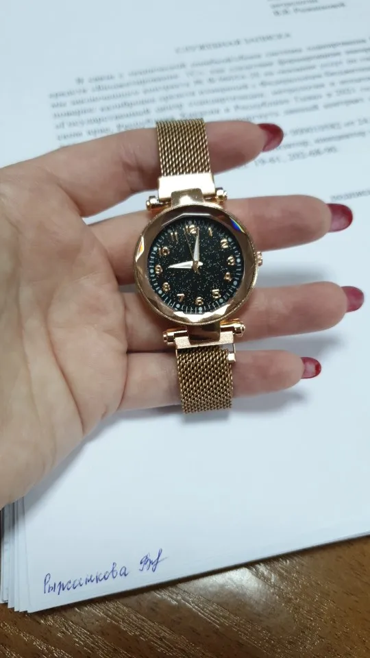 Отличные часики с магнитным ремешком , спасибо!шли правда ну ооочень долго и упакованы совсем просто,с нашей почтой как только не разбили