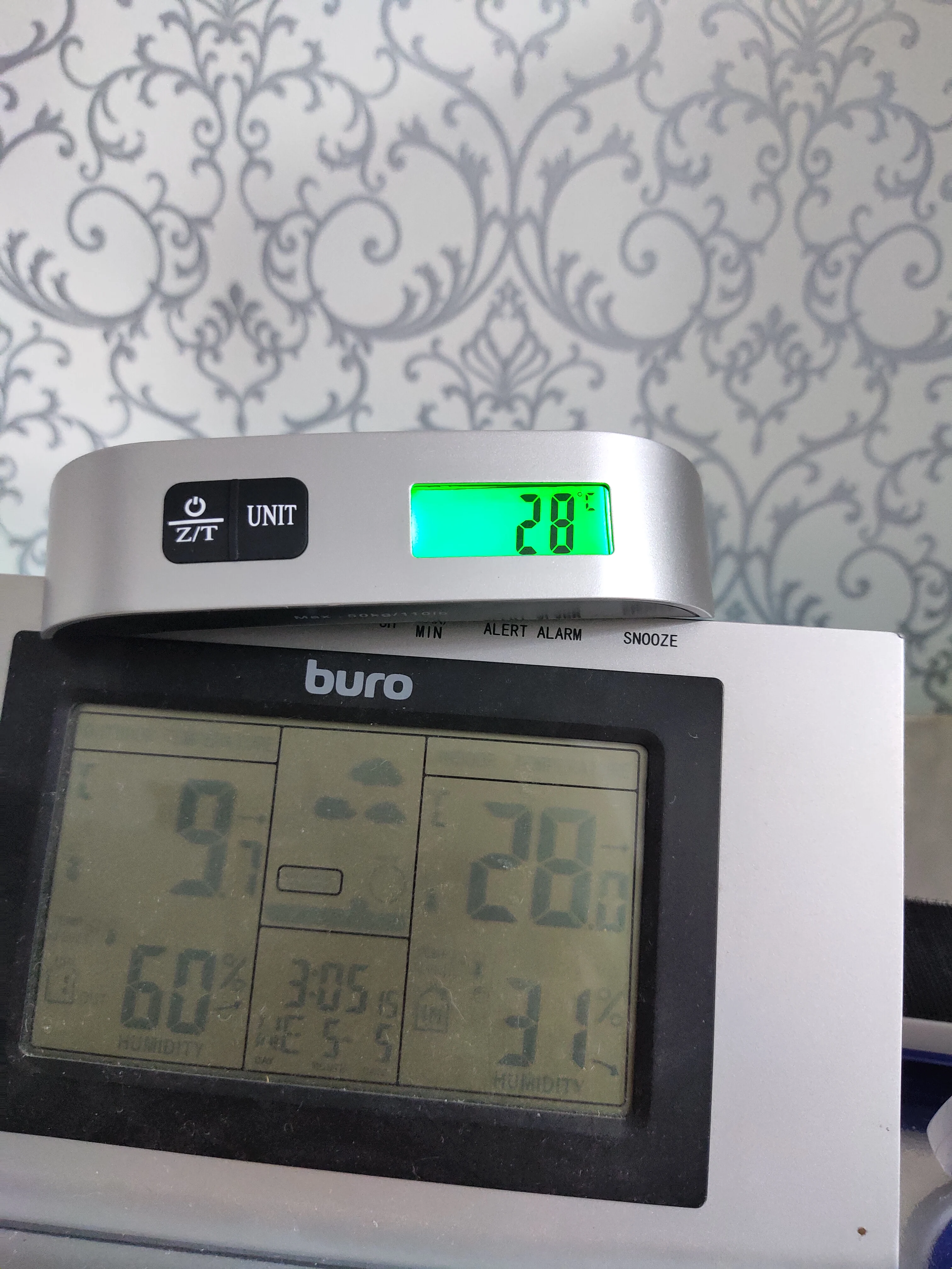 Отличная вещица! Очень удобно использовать, вес измеряет точно, также есть датчик температуры воздуха по Цельсию и Фаренгейту. Работает от батарейки. Рекомендую!