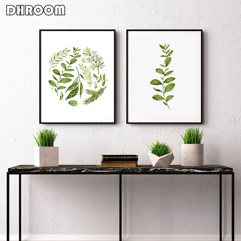 Акварельные листья настенная живопись на холсте зеленый стиль расте...