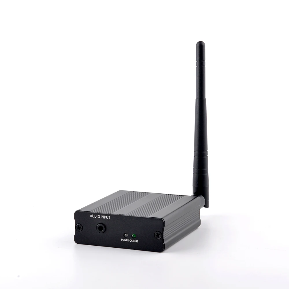 3. Внутренняя батарея встроена в передатчик для удаленного использования. Переключатель уровня мощности передачи (Высокий/низкий). Доступен стереоаудио вход на передатчике.