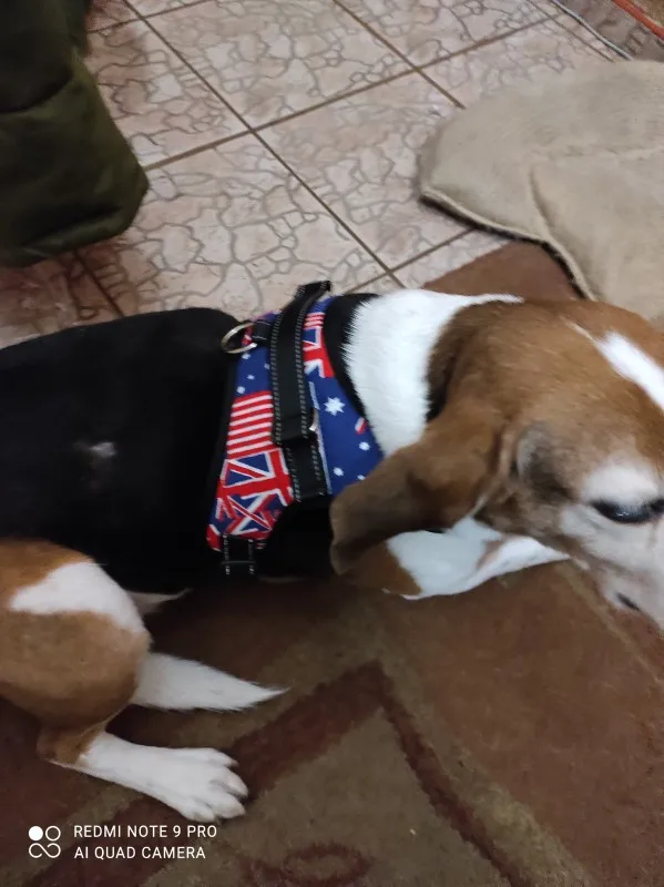 шлейка для бассет-хаунда 33 кг. размер подошел отлично, шея крупнее головы, из ошейников вылетает. для второй нашей собаки - аусси 28 кг - большой размер. закажу для него на размер меньше