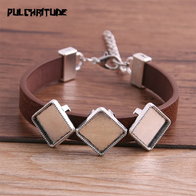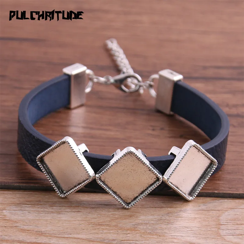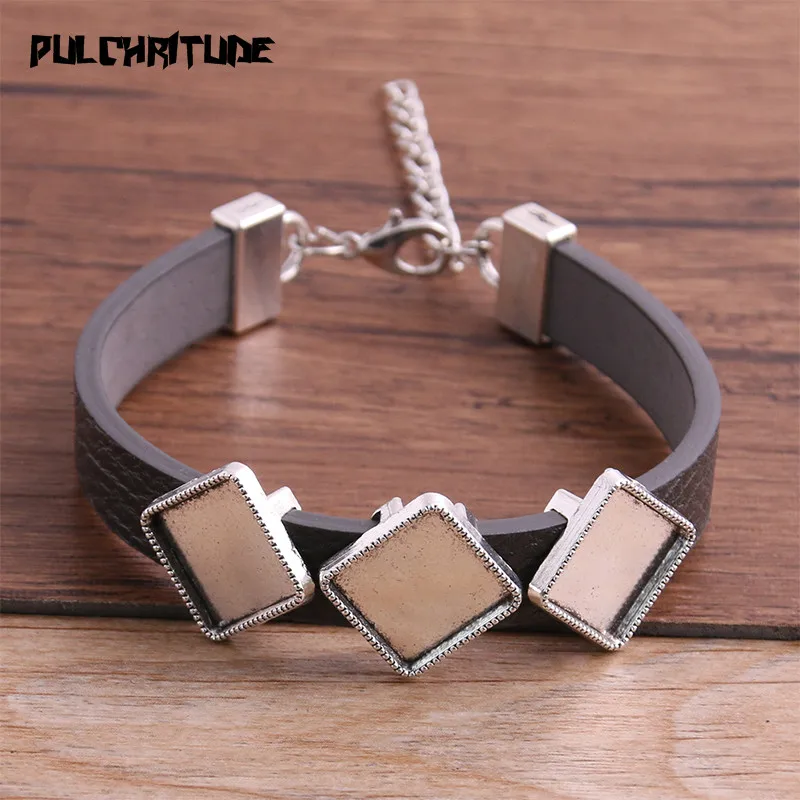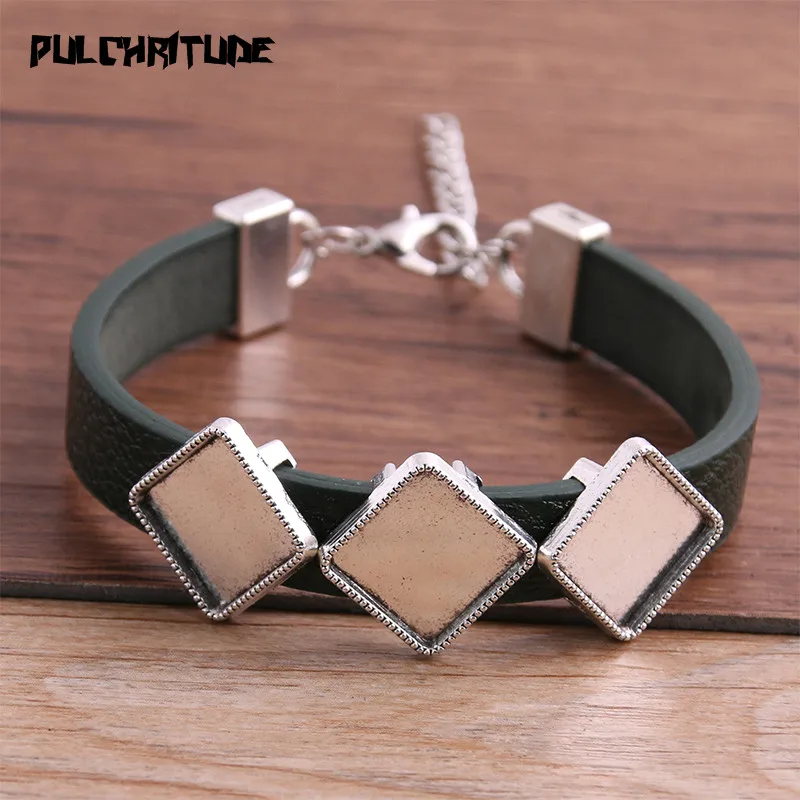 1 шт., браслеты из искусственной кожи, основа, запонки, пустые подносы, пайки, квадратные 12 мм * 3 стекла, камея, купол, кабошон, сделай сам, ювелирное изделие