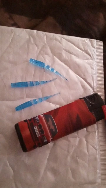 Приманки, по крайней мере мне, понравились. Окуней спросим весной. Запах едва уловимый, приятный, даже не понять, чем пахнет. Резина на отрыв слабовата, если сравнивать со всем известным брендом, хвостики укорачиваются после малейшего усилия. Пятидесяти миллиметровые легко превращаются в сорока миллиметровые. Но резина мягкая, играть должна неплохо.