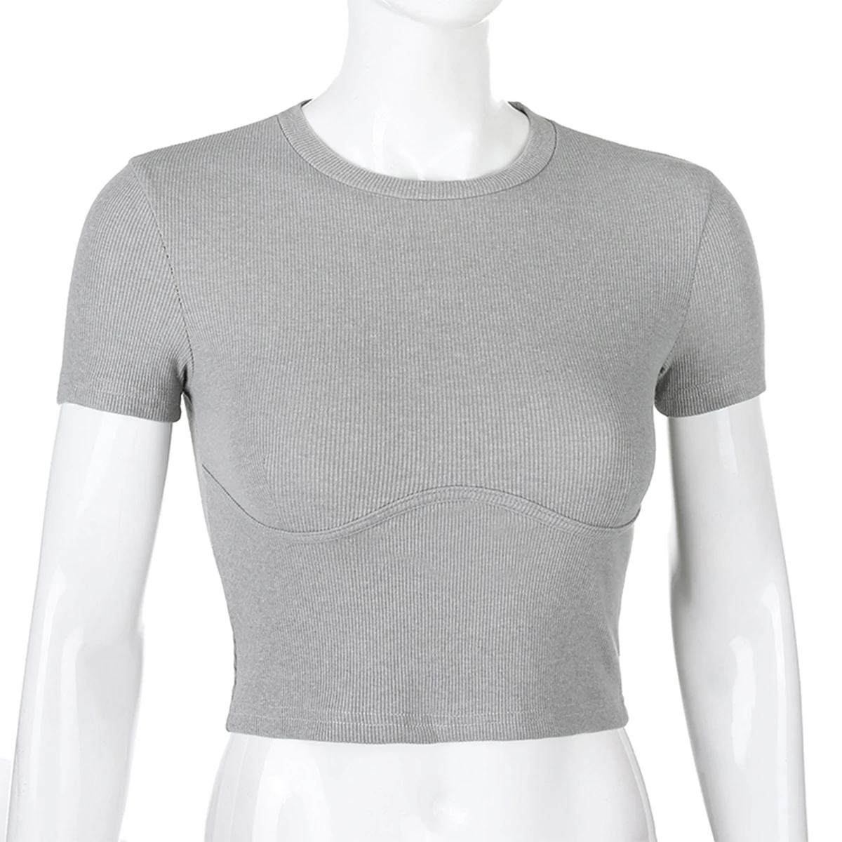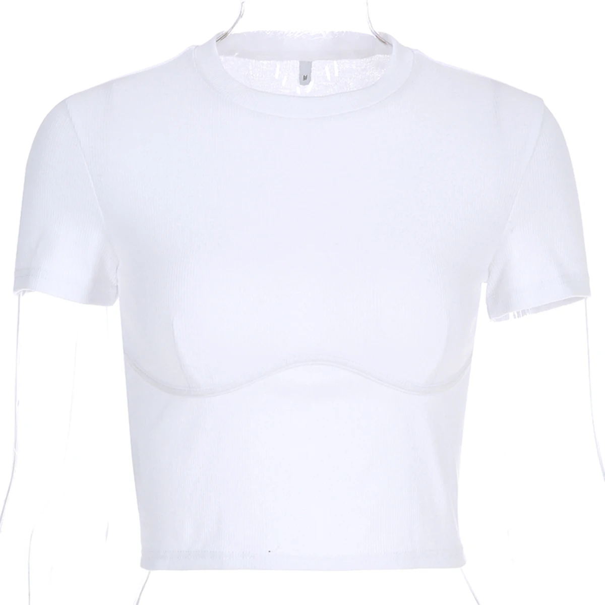 Футболка женская летняя облегающая однотонная с коротким рукавом, 3 цвета