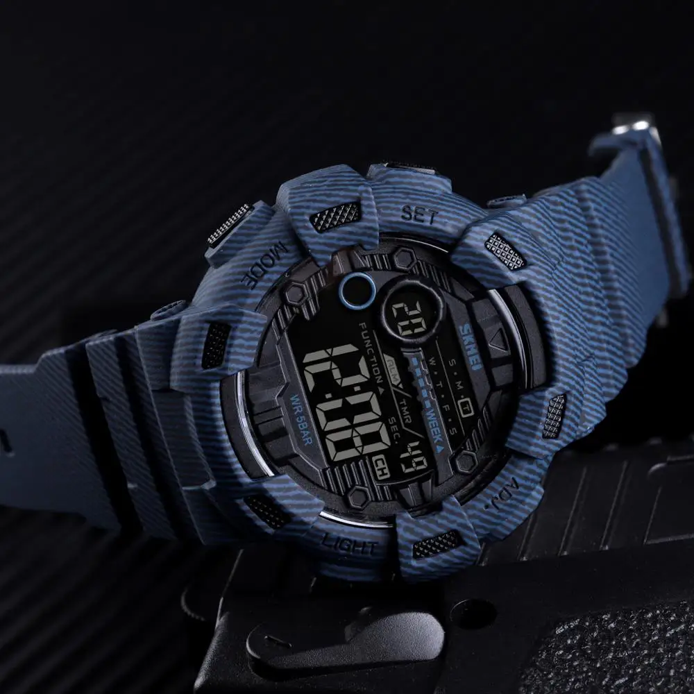 Часы наручные SKMEI Мужские Цифровые, спортивные модные армейские с джинсовой вставкой, водонепроницаемые электронные в стиле милитари с будильником