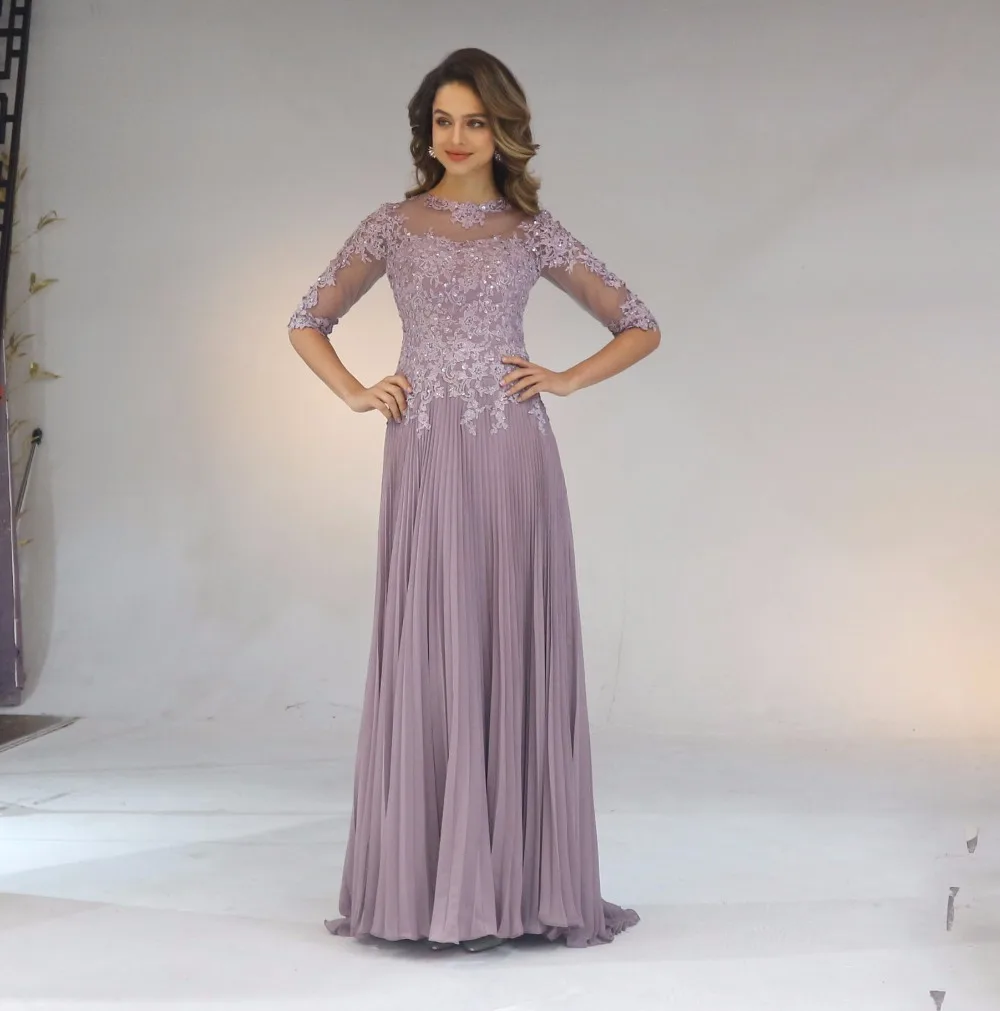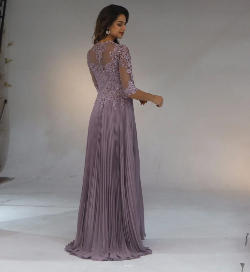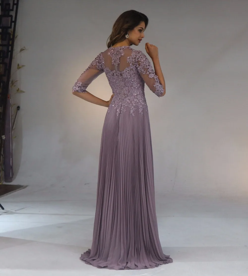 Шифоновое Плиссированное кружевное платье-трапеция с аппликацией и рукавом 12 для матери невесты, длинное платье для праздника