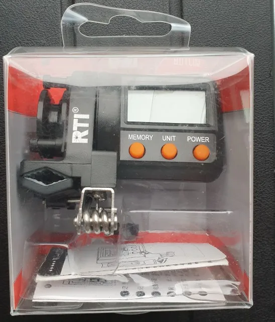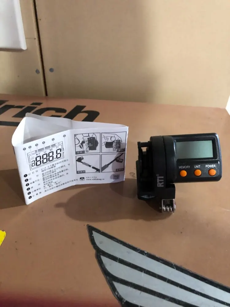 Дошло очень быстро, всего за 4 дня: нашелся на складе в Москве. Упакован аккуратно. Питание от элемента CR2032, имеется в комплекте. Полностью готов к работе. В комплекте имеется инструкция на китайском и английском языках. Дисплей поворачивается на 180 градусов вокруг горизонтальной оси, что позволяет удобно закрепить его на бланке. Имеется обратный отсчёт лески, подсветка дисплея и память на 10 измерений. К недостаткам я бы отнес не слишком надежную систему крепления на удилище. При случайном касании рычажка крепления девайс может самопроизвольно отстегнутся. На тестировании показал себя неплохо, ошибка измерения не превысила 1%. На рыбалке пока не пробовал, если возникнут проблемы - дополню отзыв. В целом рекомендую.