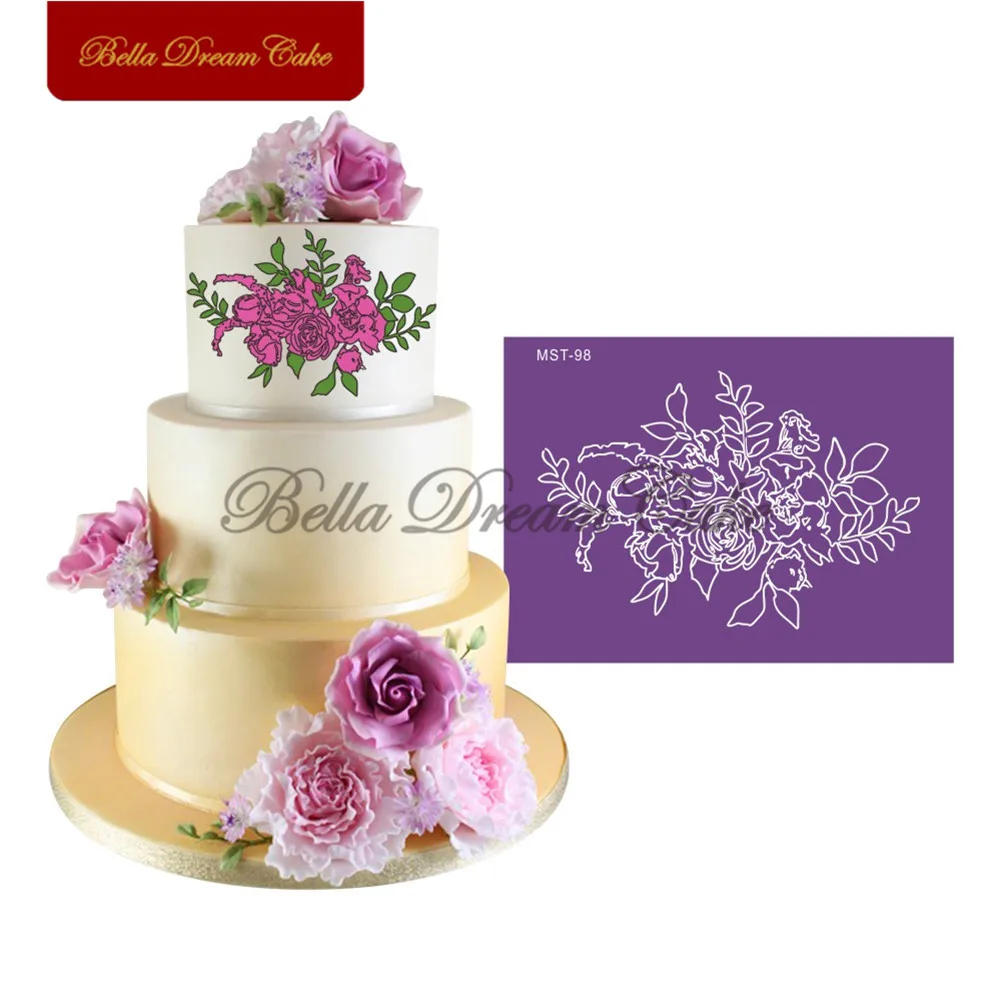 Цветочный рельефный дизайн трафареты для торта, помадка Свадебные с...