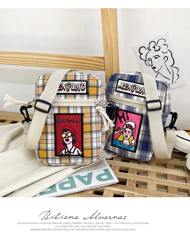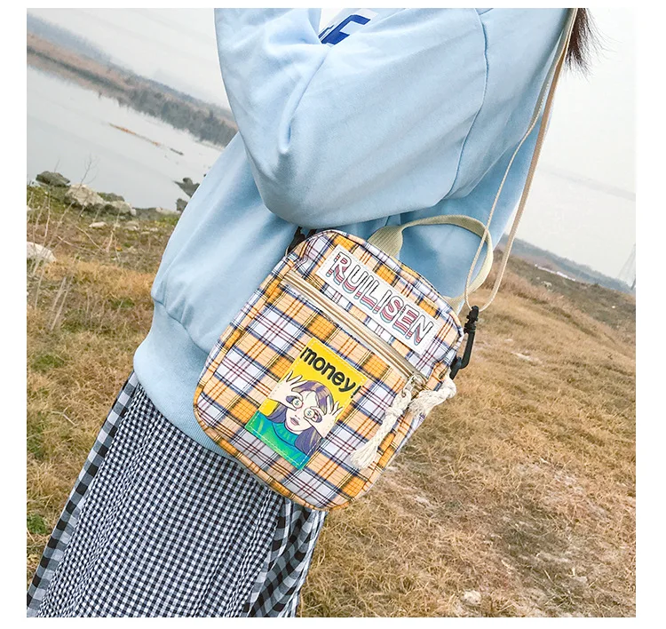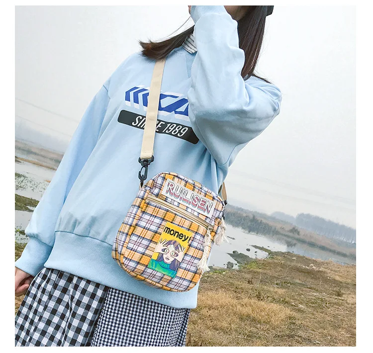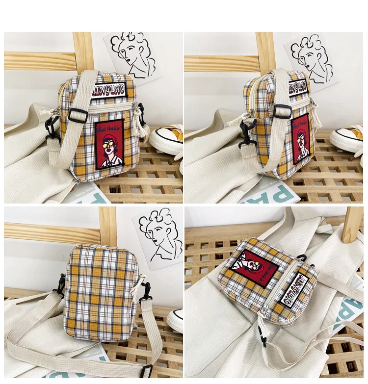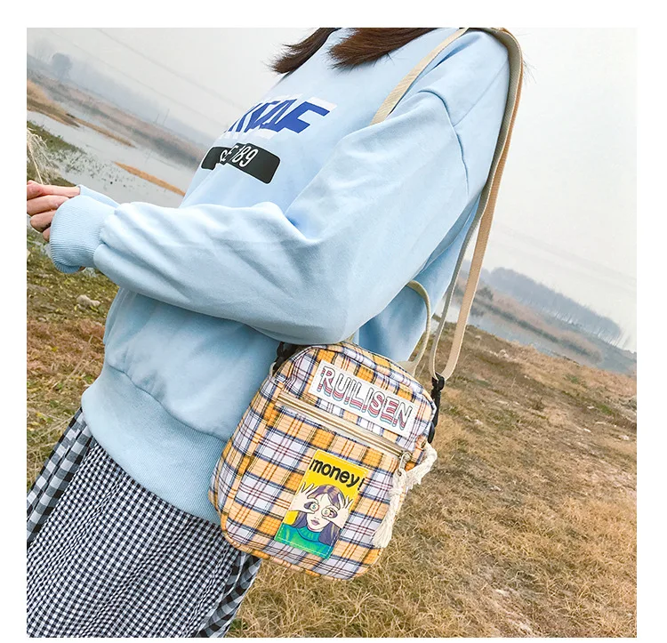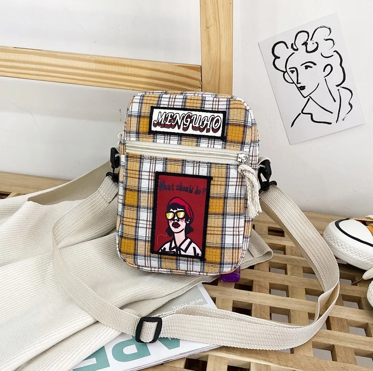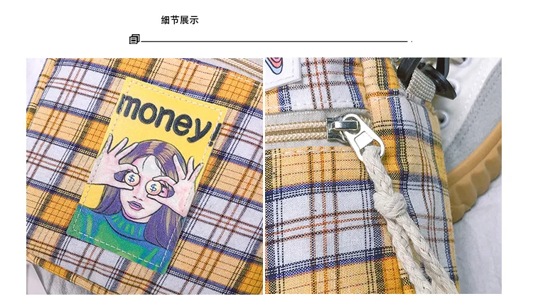 Сумка женская клетчатая через плечо с принтом, модный саквояж в стиле Харадзюку, повседневный чемоданчик с клапаном для студентов