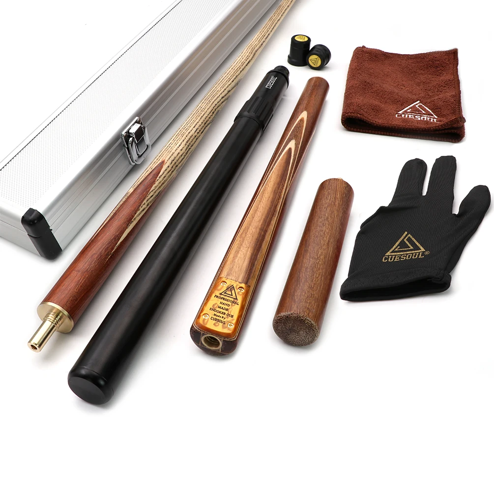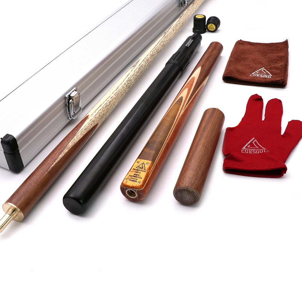 Cueshoul 57 "Снукер Cue ручной работы 34 соединенный с мини прикладом конец расширение Упаковано в алюминиевый Cue случае