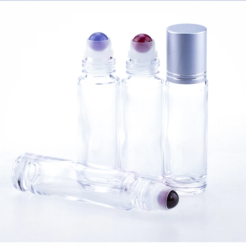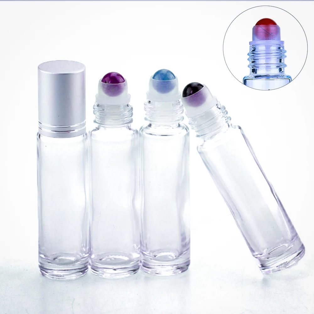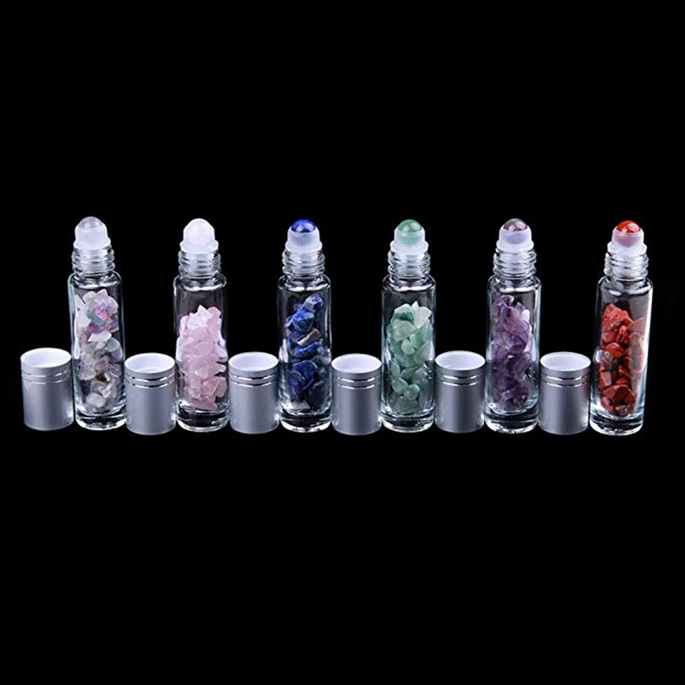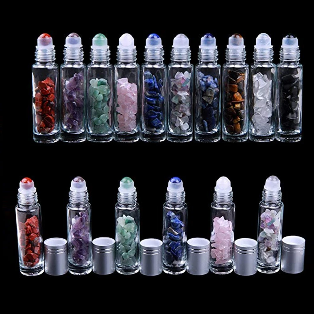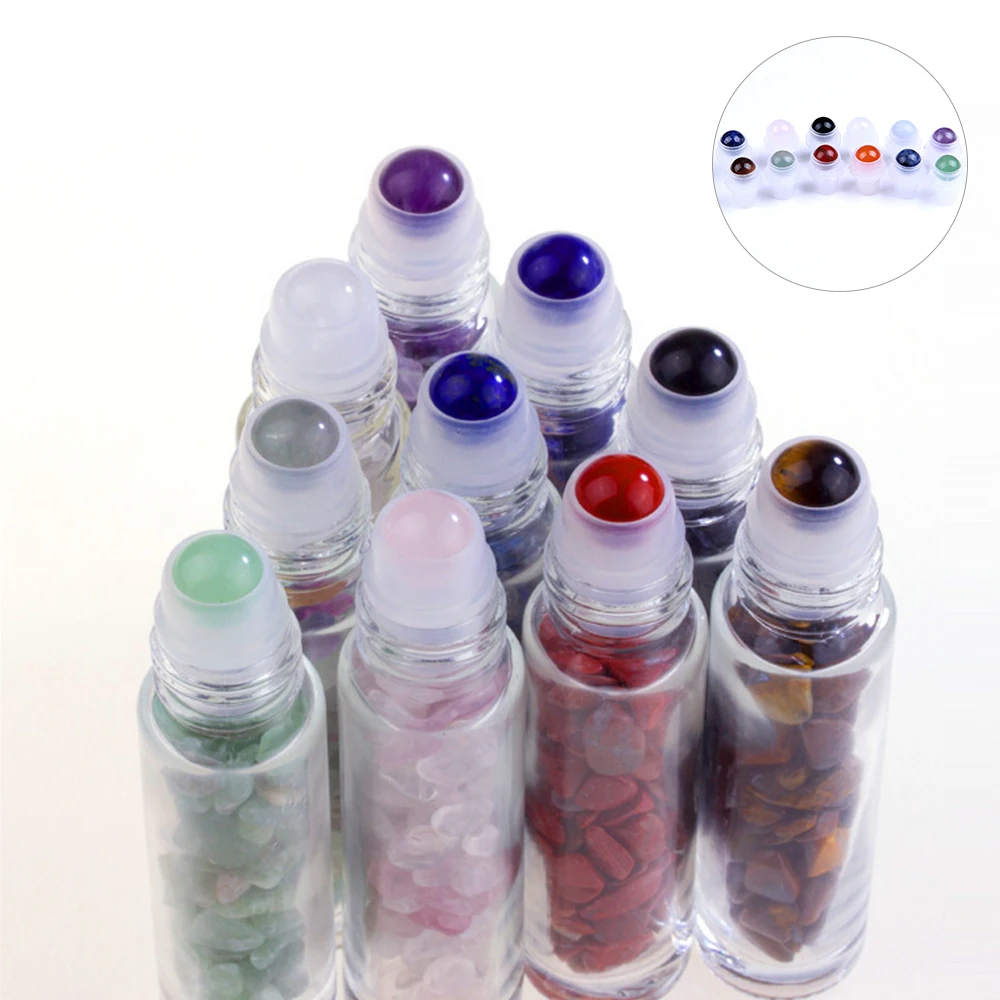 Натуральный Полудрагоценный камень эфирное масло драгоценный камень роликовые шариковые бутылки прозрачные стеклянные роликовые бутылки с кристаллами внутри