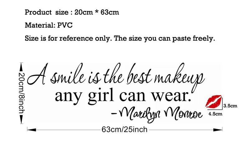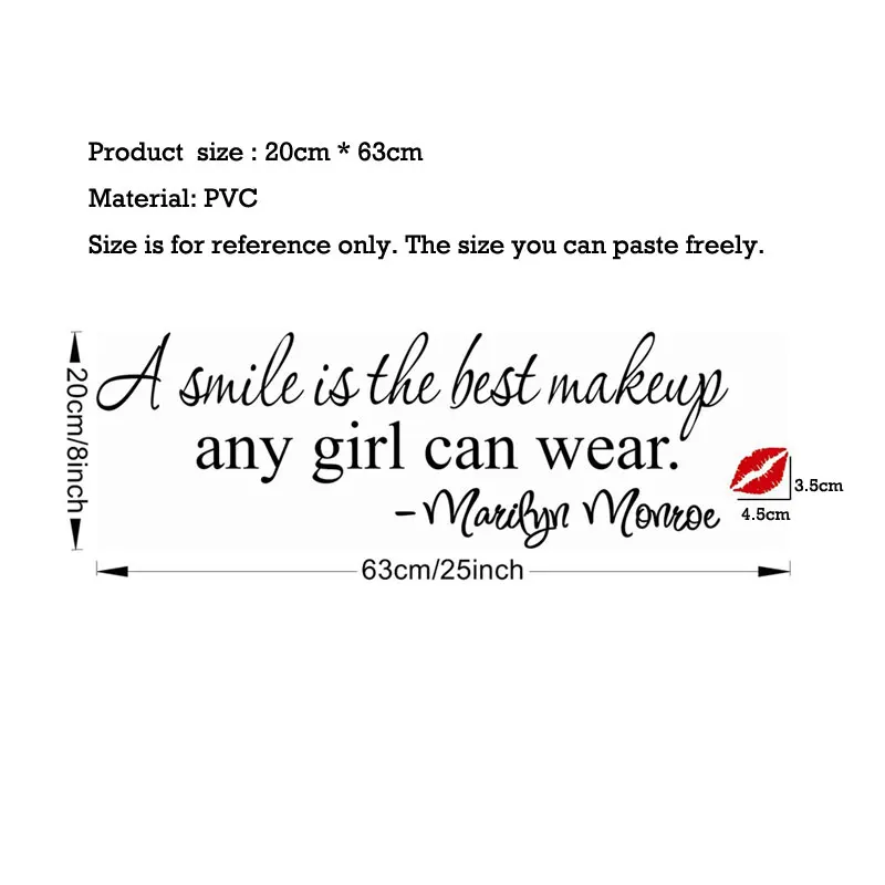 Улыбка-лучший макияж Мэрилин Монро вдохновляющая Цитата наклейки на...