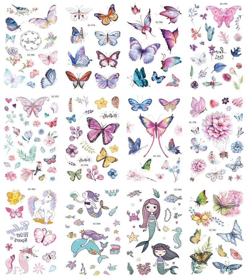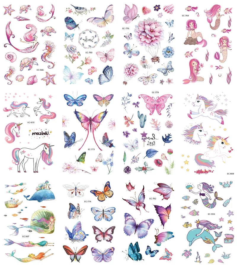 Водостойкие Мультяшные временные тату-наклейки для детей с изображением русалки единорога динозавра цветка бабочки