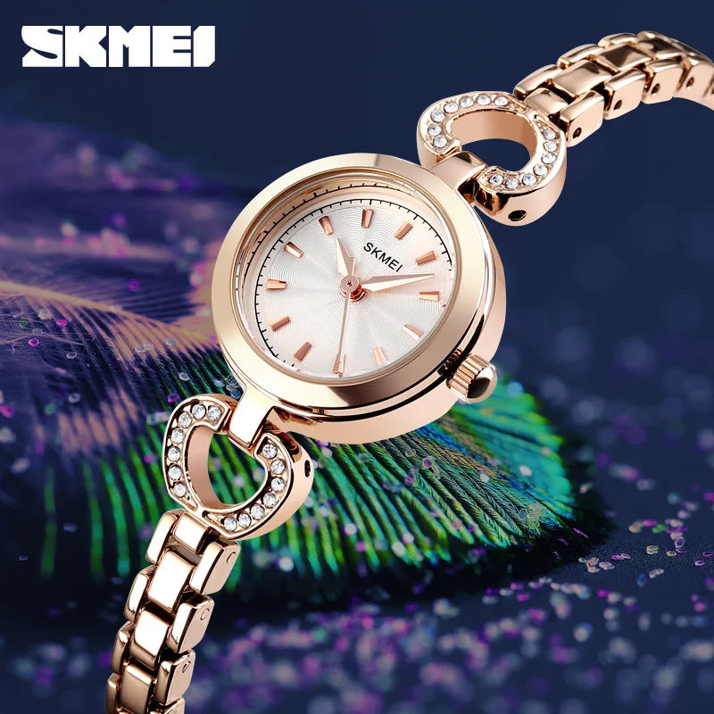 SKMEI повседневные женские кварцевые часы с ремешком из сплава водонепроницаемые женские наручные часы Relogio Feminino 1408 цвета розового золота и серебра