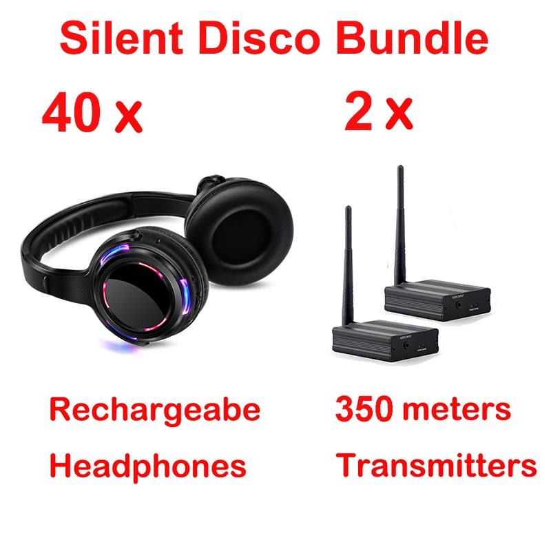 Перезаряжаемые наушники Сайлент диско светодиодный Беспроводной комплект наушников, в том числе для выведения токсинов, 40 шт с 2 Передатчики 500 м для ночного клуба вечерние DJ