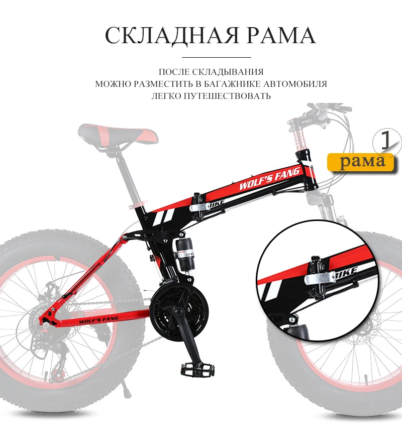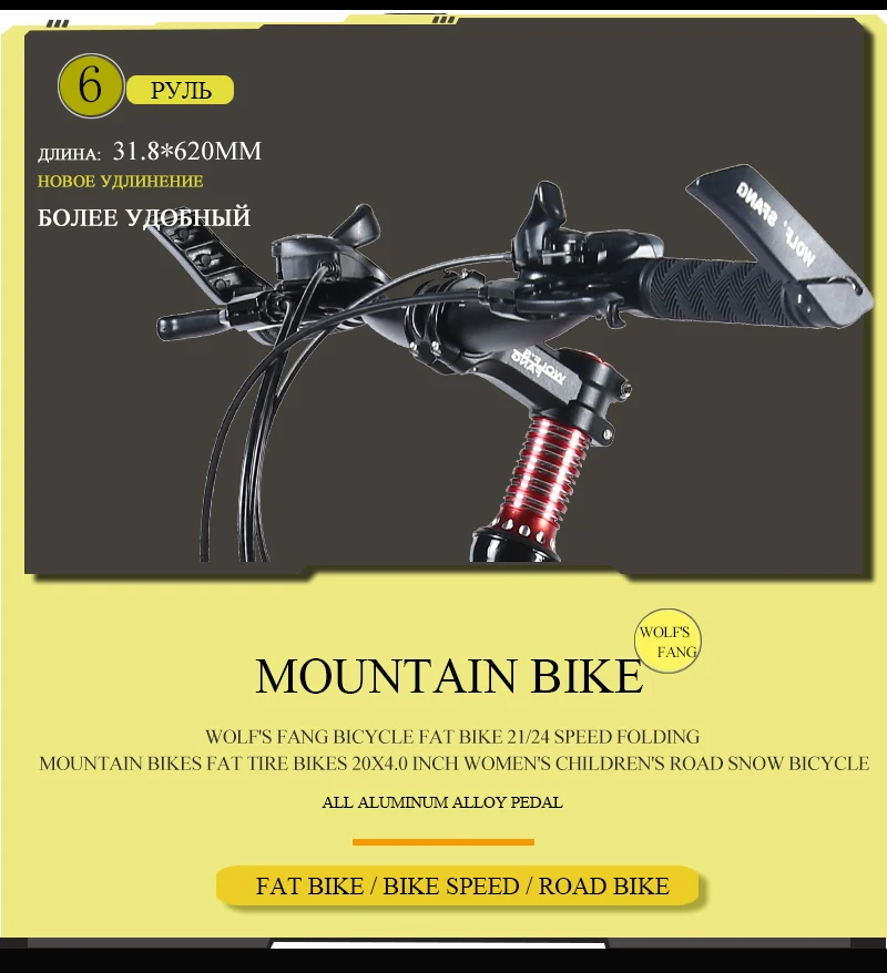 Горный велосипед wolf's fang, 21 скорость, фэтбайк, дорожный фэтбайк, 20*4,0, передний и задний механический дисковый тормоз, новинка, бесплатная доставка