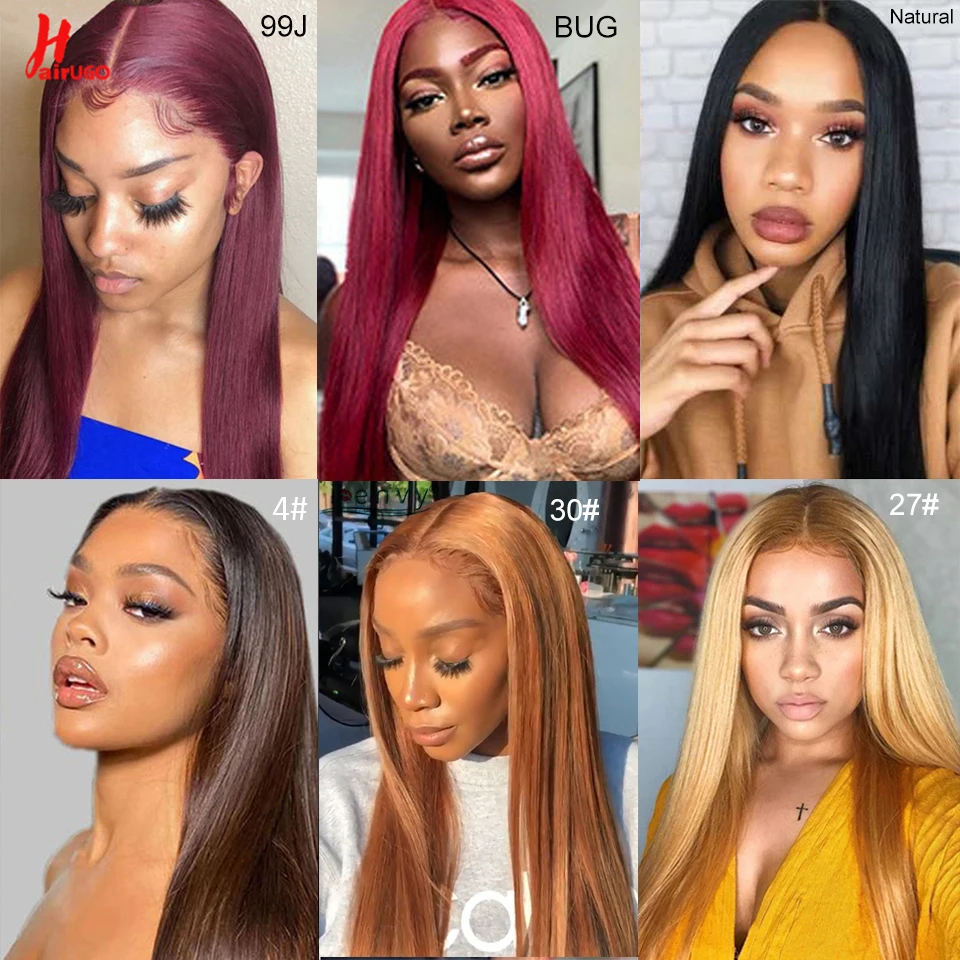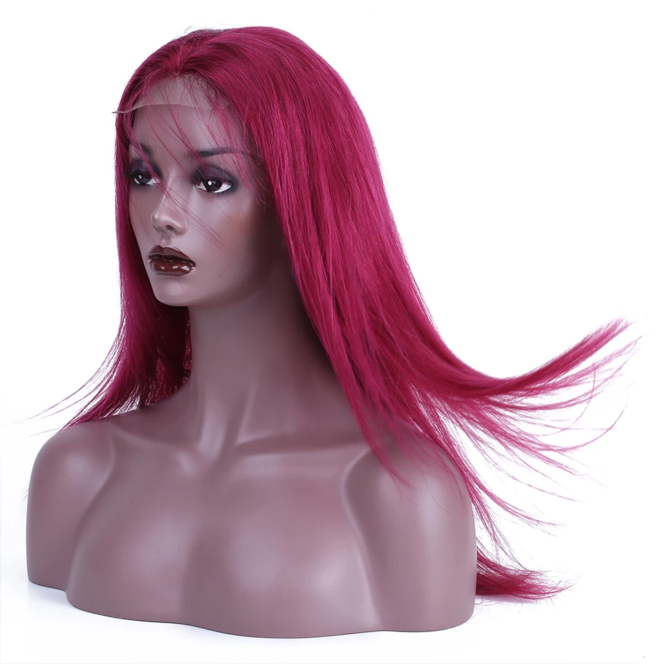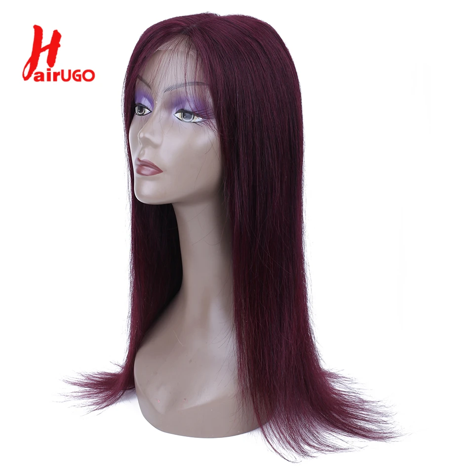 Парик HairUGo 99J на сетке спереди, бразильские бордовые прямые парики на сетке, парик из человеческих волос, цветные парики без повреждений для женщин, предварительно выщипанные 180%