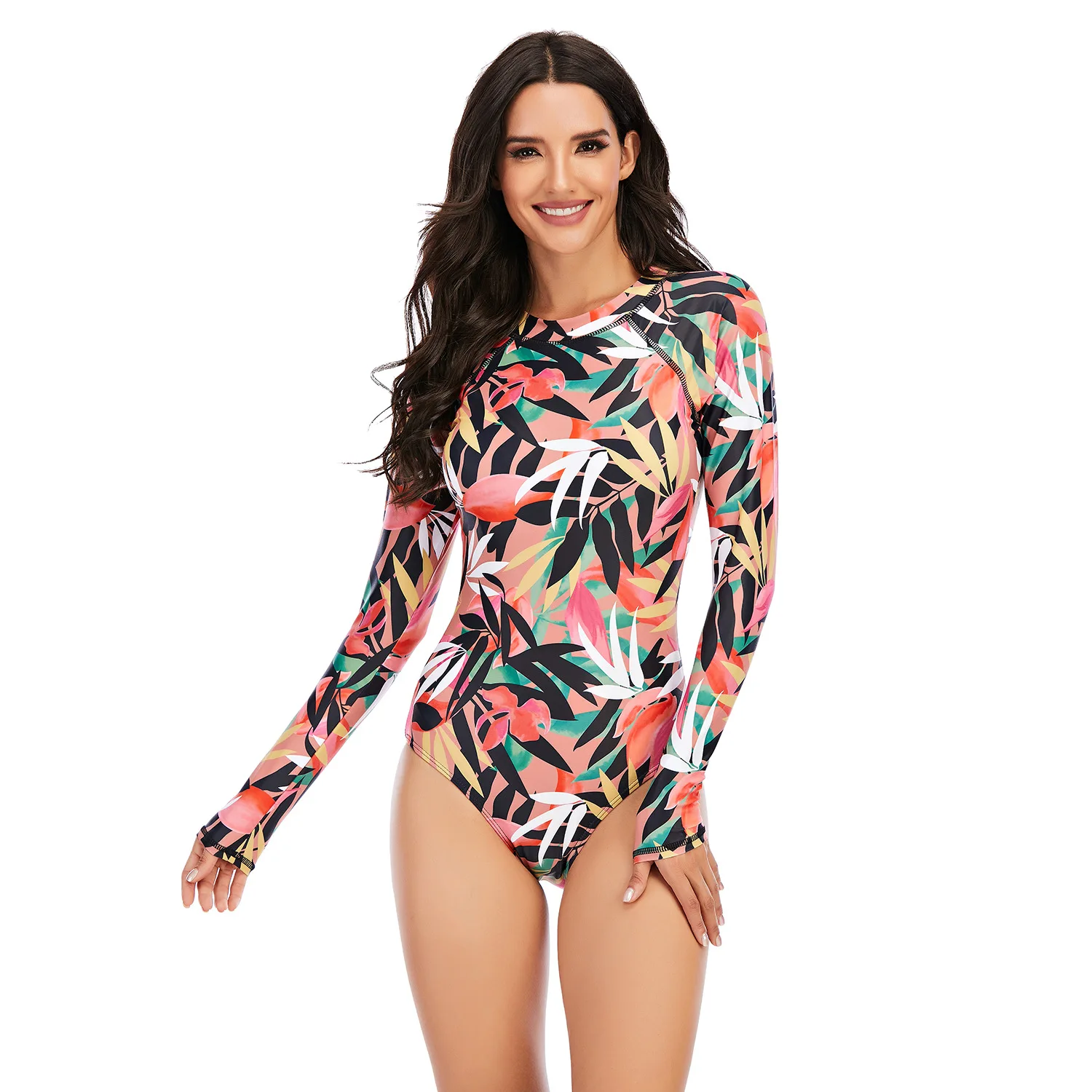 Женский слитный купальник, Рашгард с цветочным принтом, с длинным р...