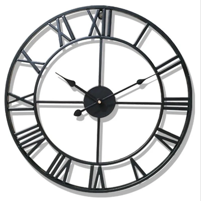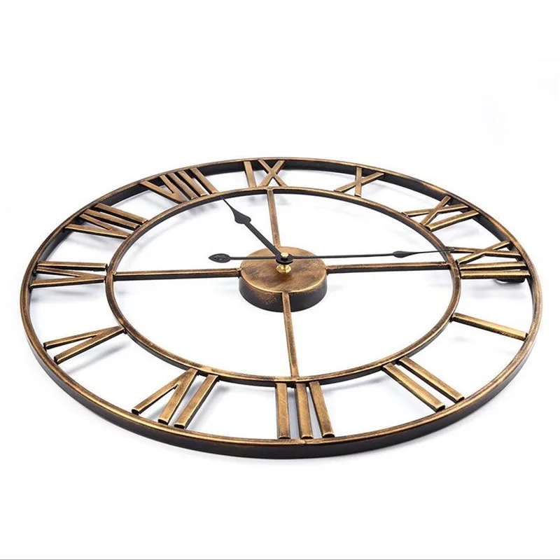 Часы настенные 3D круглые в стиле ретро, кованые полые железные большие бесшумные декоративные, украшение для дома, 47 см