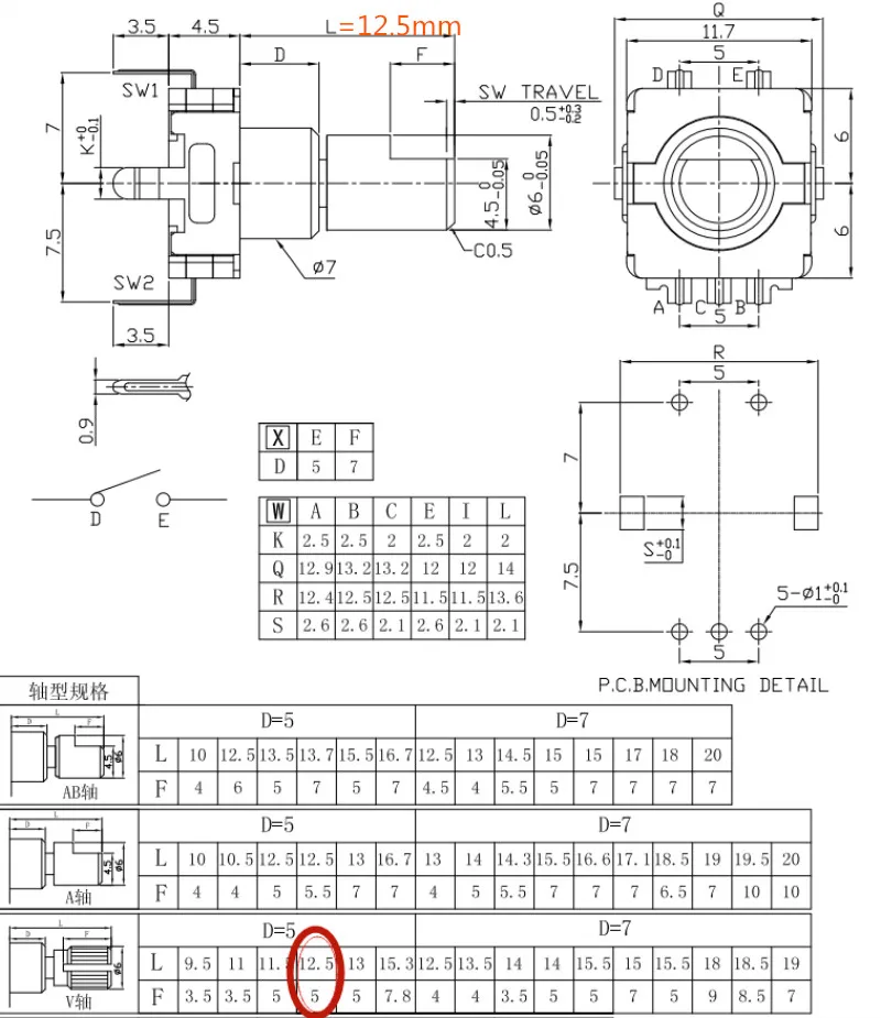 Переключатель кода поворотного энкодера EC11, 2 шт.лот, 30 позиций, с кнопочным переключателем, 5pin, 12,5 мм, вал слива