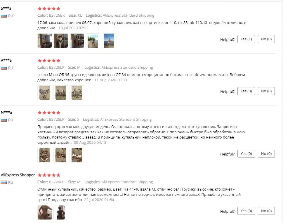 Купальник очень понравился, хорошее качество, НО информация о размерах указана НЕ ВЕРНО. Ношу размер С, обычно купальники заказываю М на али, т.к. они сильно маломерят а я не люблю чтоб прям впивался. Но этот оказался прям на полный 44, а то и 46 размер. Трусы очень велики на 42 размер . Буду заказывать размер С