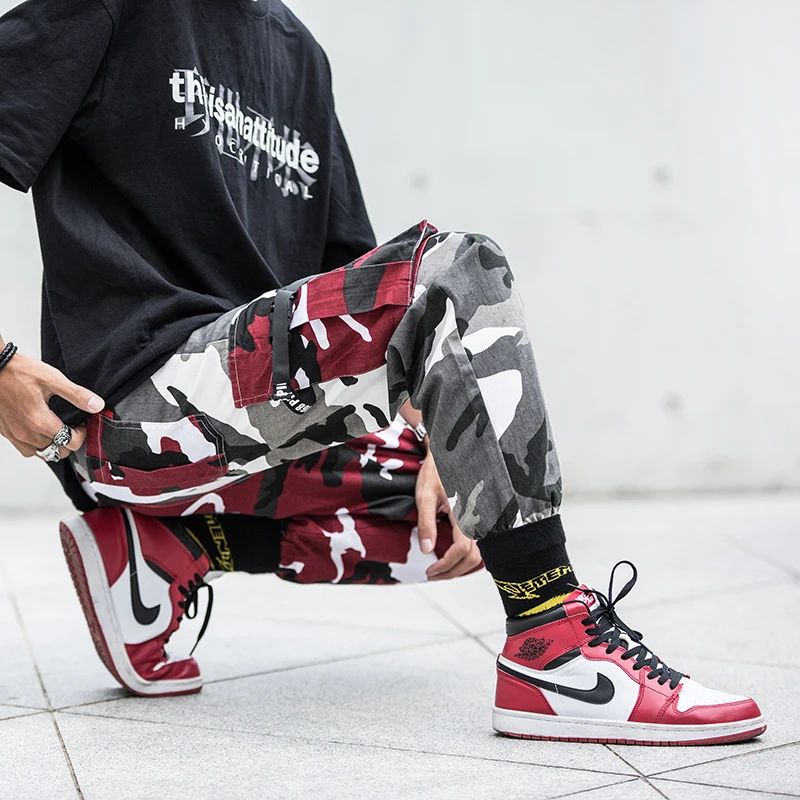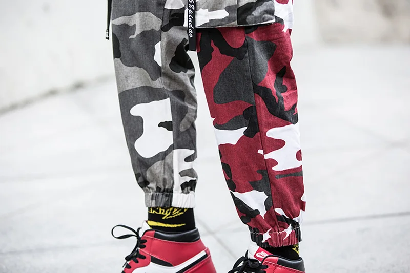 Брюки-карго мужские с большими карманами, модные повседневные Джоггеры в стиле пэчворк, свободного кроя, камуфляжные брюки в стиле хип-хоп, уличная одежда