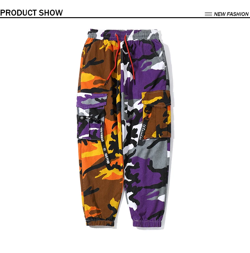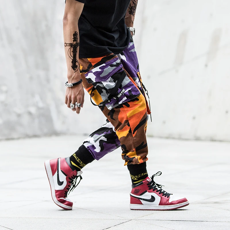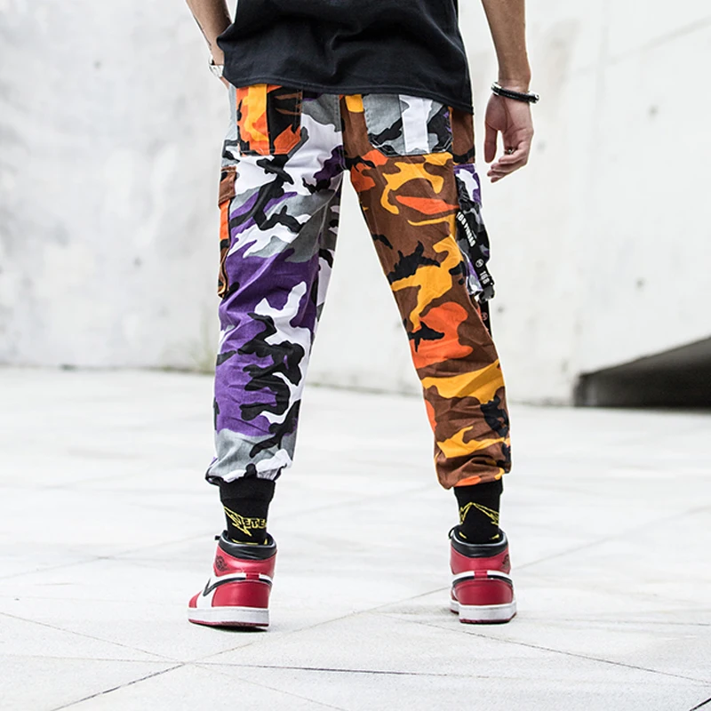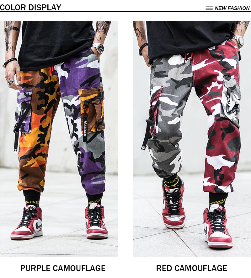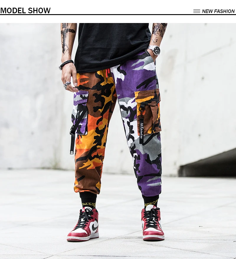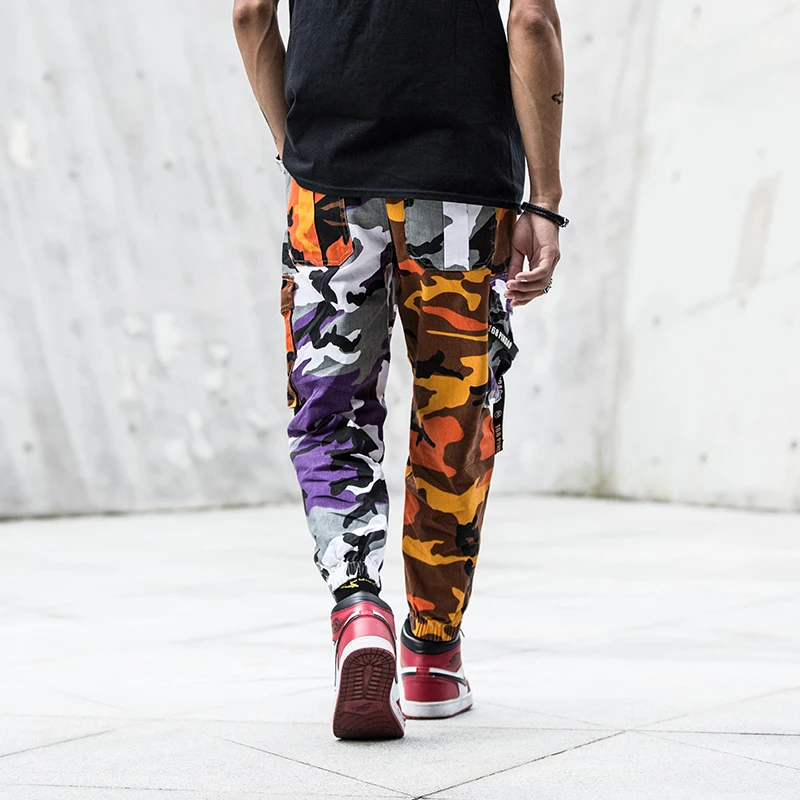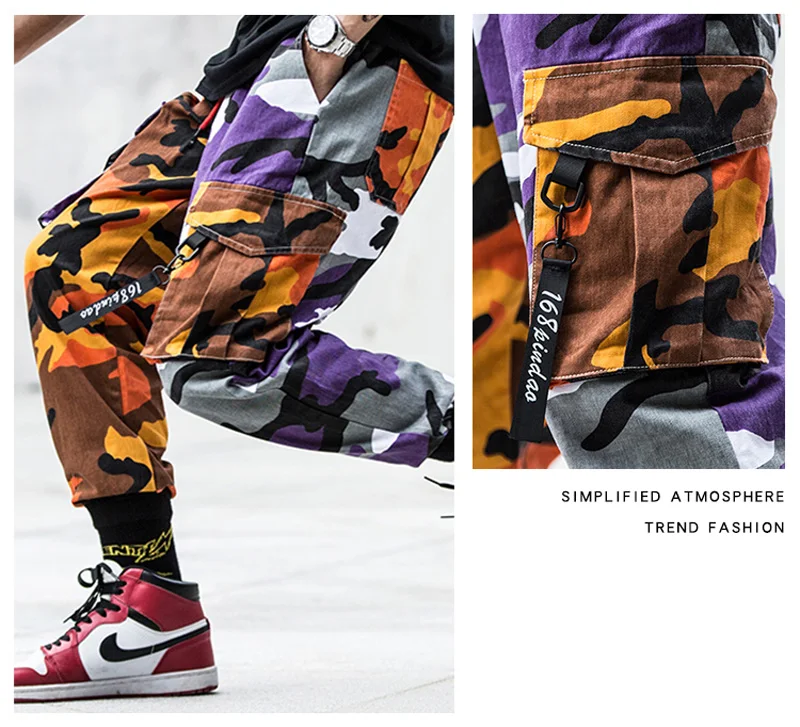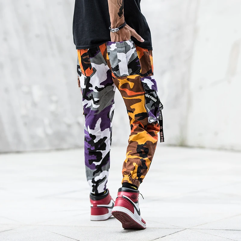 Цветные камуфляжные Джоггеры-карго, мужские брюки, повседневная кам...