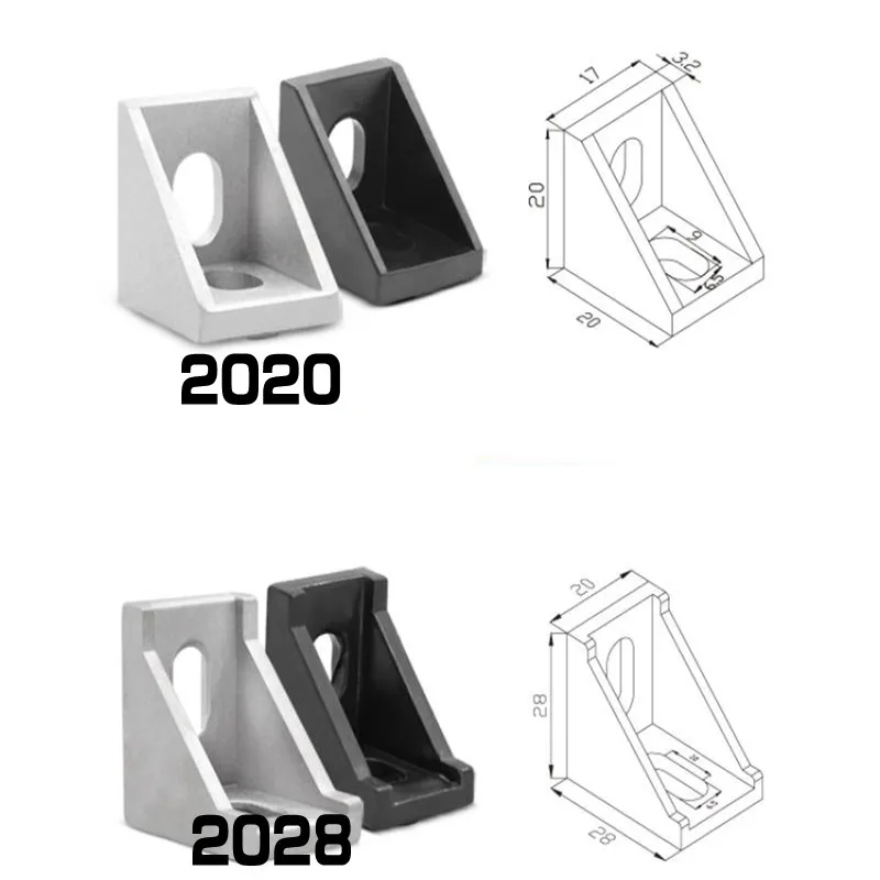 20pcs 10pcs 2020 or 2028 black and sliver bracket Aluminum Profile Corner Fitting Angle for 2020 aluminum profile