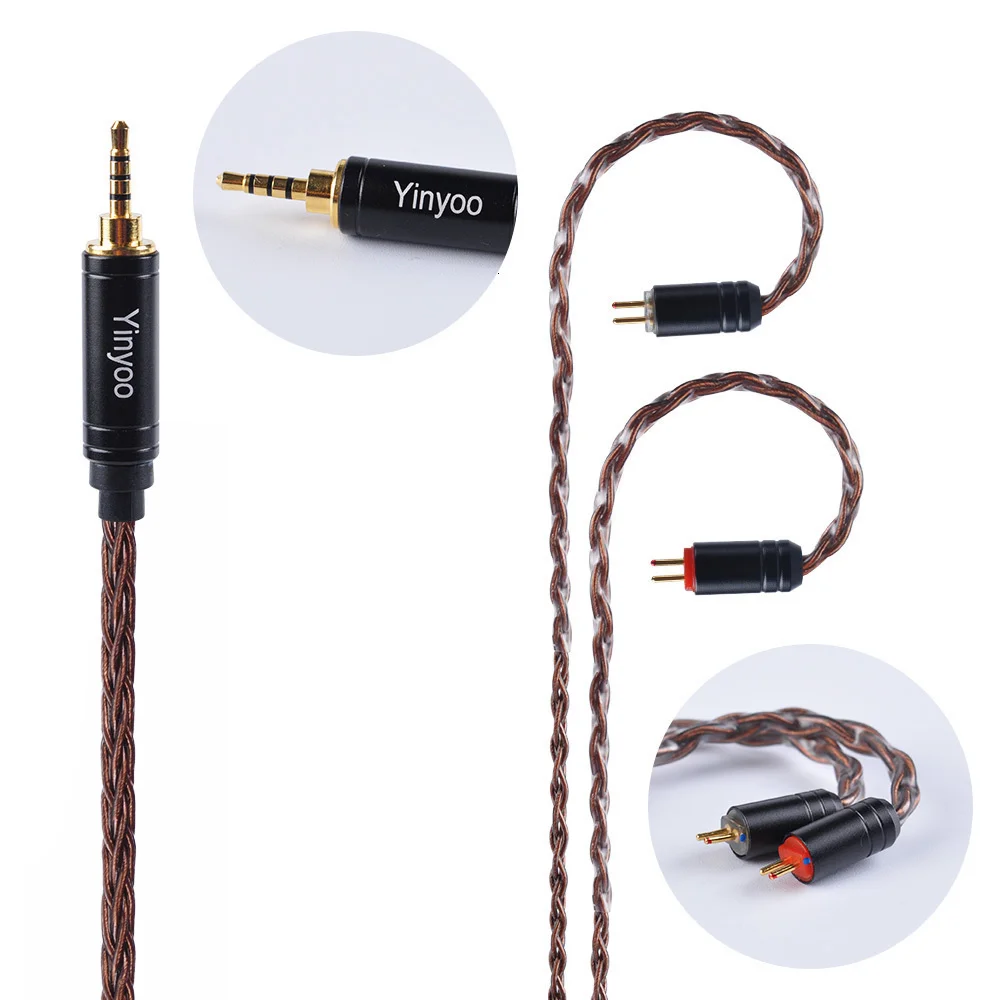 8-жильный кабель Yinyoo из чистой меди 2,53,54,4 мм, сбалансированный Кабель с разъемом MMCX2Pin для BLON BL-01 BL-03 KZ DQ6 EDX TINHIFI T2
