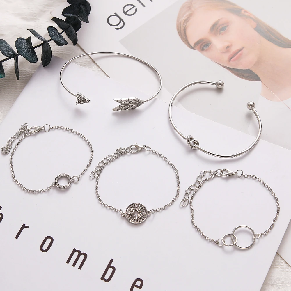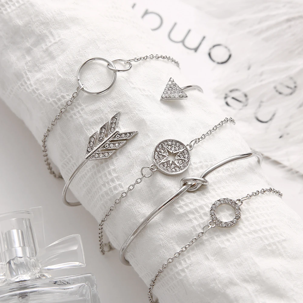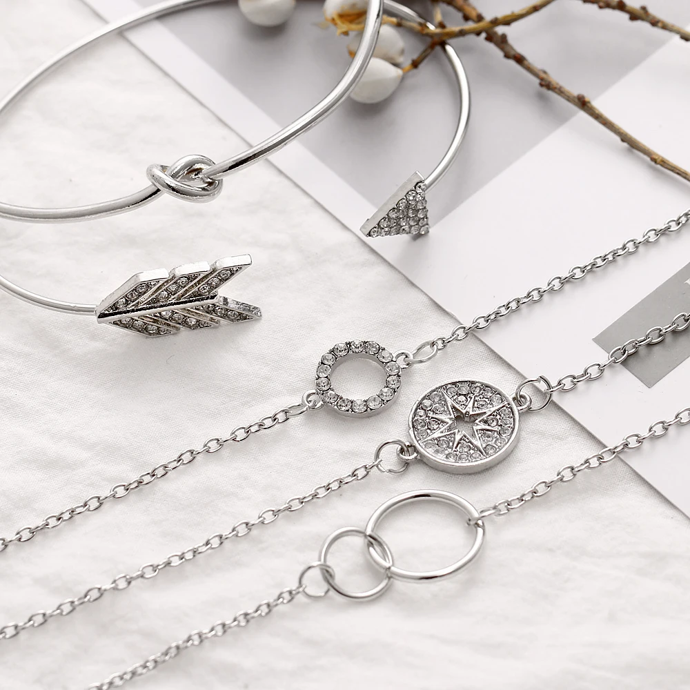 Браслет и браслет VKME5 шт.стразы, Круглый браслет со стрелками и кристаллами, женский новый ретро браслет, модные украшения для женщин