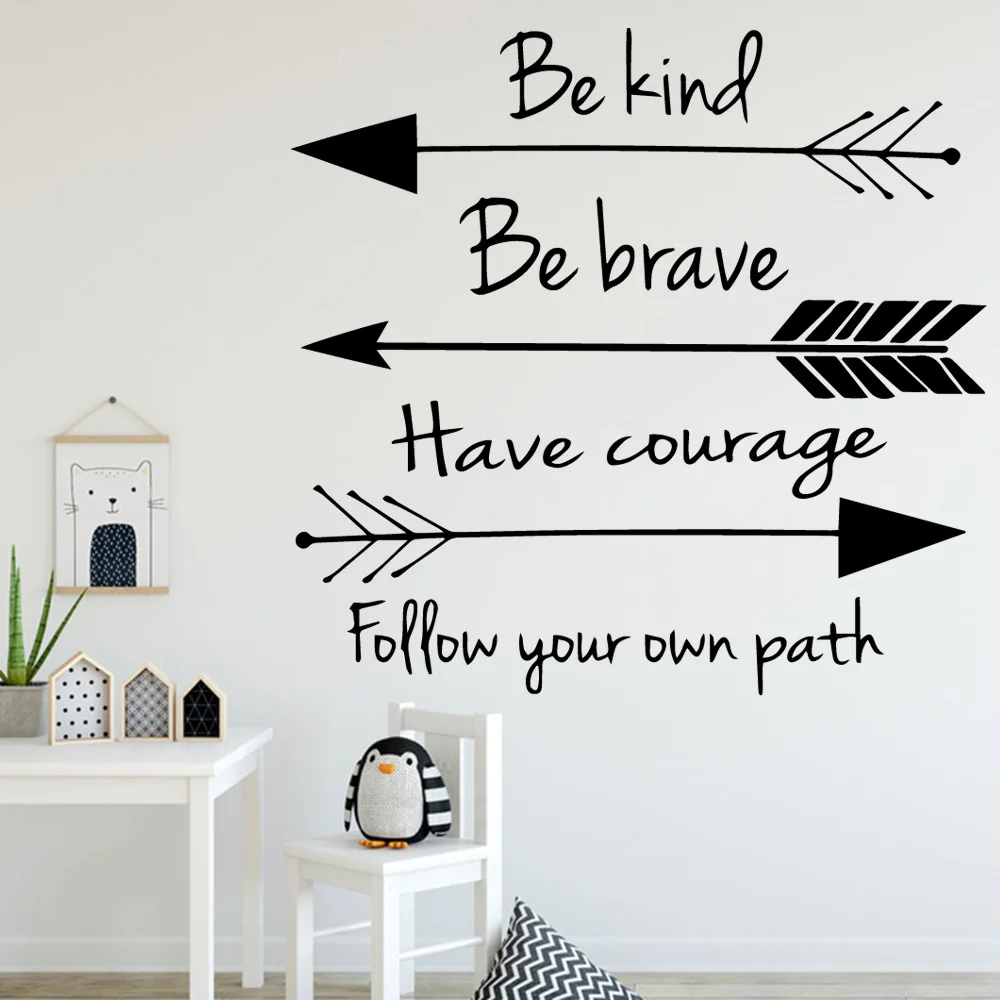Наклейки на стену со стрелой и надписью Be Kind Be Brave Quote, виниловые художественные наклейки для дома, декор для гостиной, спальни, настенные Стикеры, s Adesivo De Parede