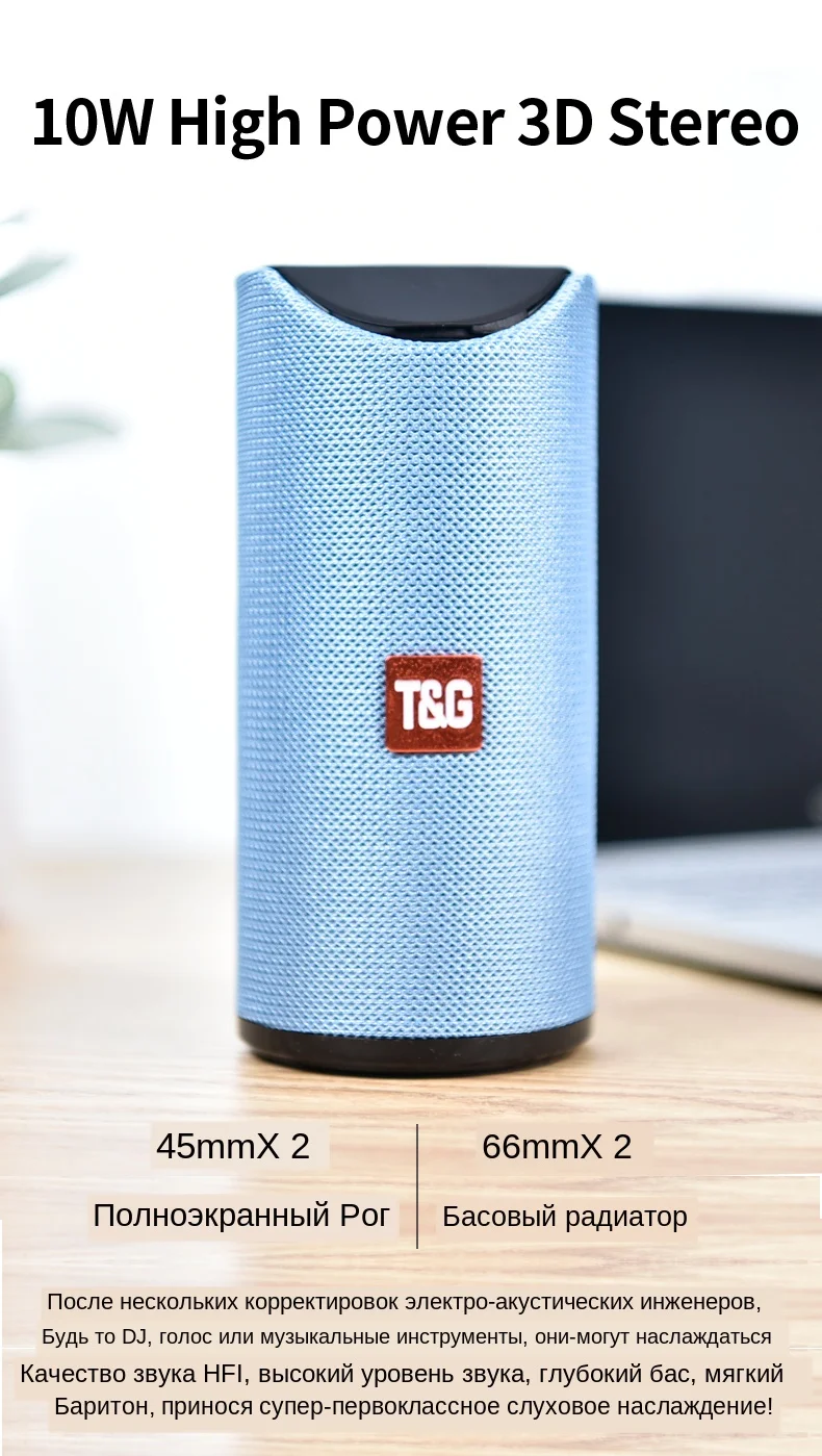 Портативный динамик Bluetooth TG, беспроводная мини-колонка, 3D, 10 Вт, стерео, FM, карта TF, бас