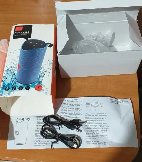 Хороший продукт По низкой цене он имеет хорошее качество звука, достаточно мощный и достойные материалы. Включает в себя радио и USB пулт, микро. Теперь вам нужно будет увидеть, как долго работает аккумулятор и срок его службы. Доставка занимает 12 дней, неплохо для AliExpress