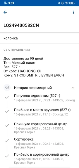 ОЧЕЕЕЕЕЕНЬ долго шел товар!!!! уж думал не придёт и открыл спор. В итоге получил на почте спустя 3 месяца!!!! колонка работает. но скорость доставки оставила отпечаток (((