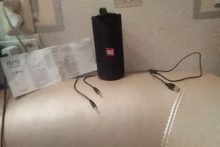 товар пришёл быстро, но в комплекте не было шнура зарядки, было два соединительных шнура. вернули 50 руб. без вопросов. Звук нормальный, колонка легкая, удобно носить с собой.